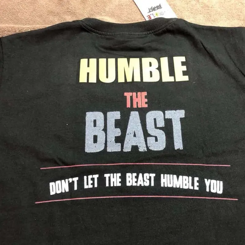 Black t shirt with the new HUMBLEBEAST logo DTG