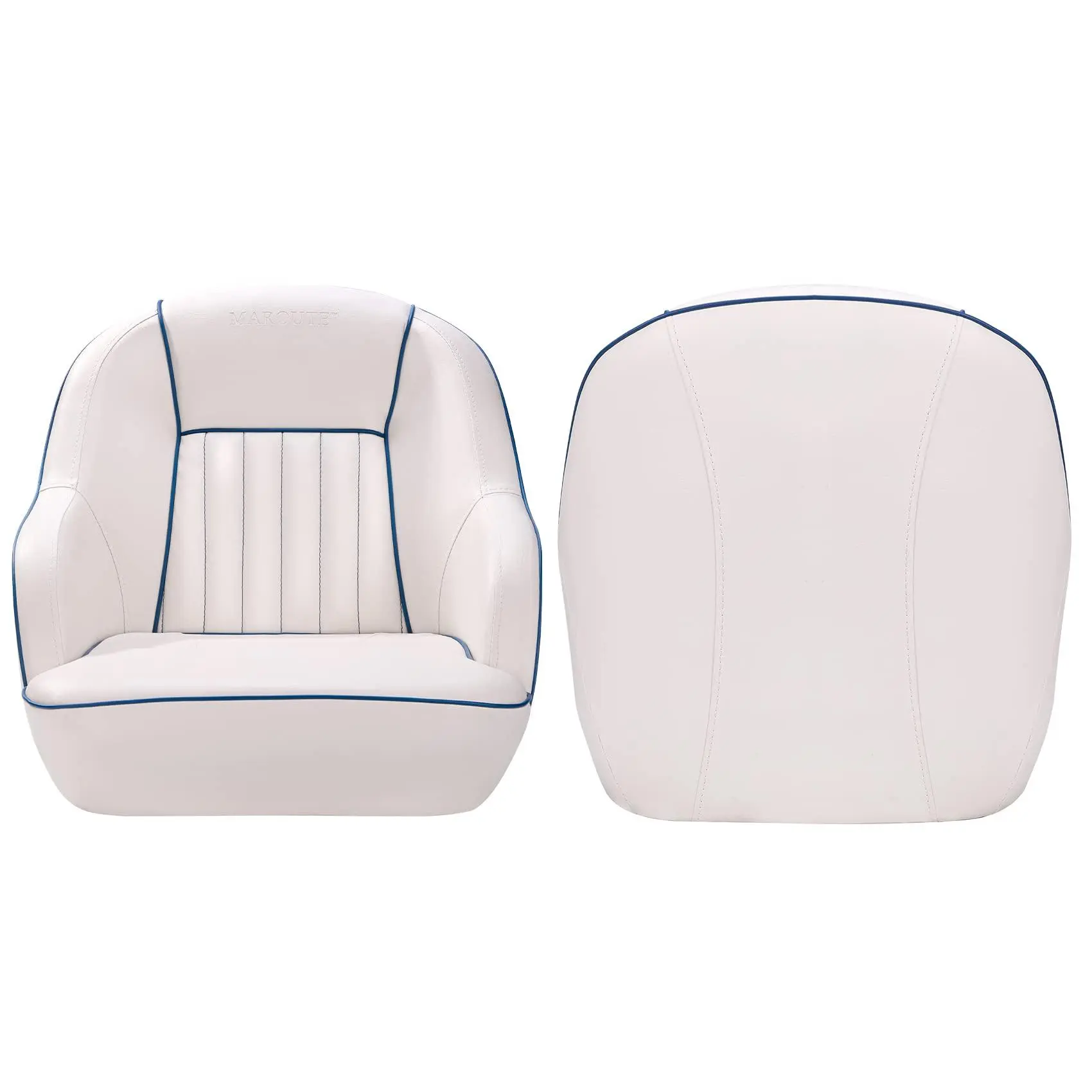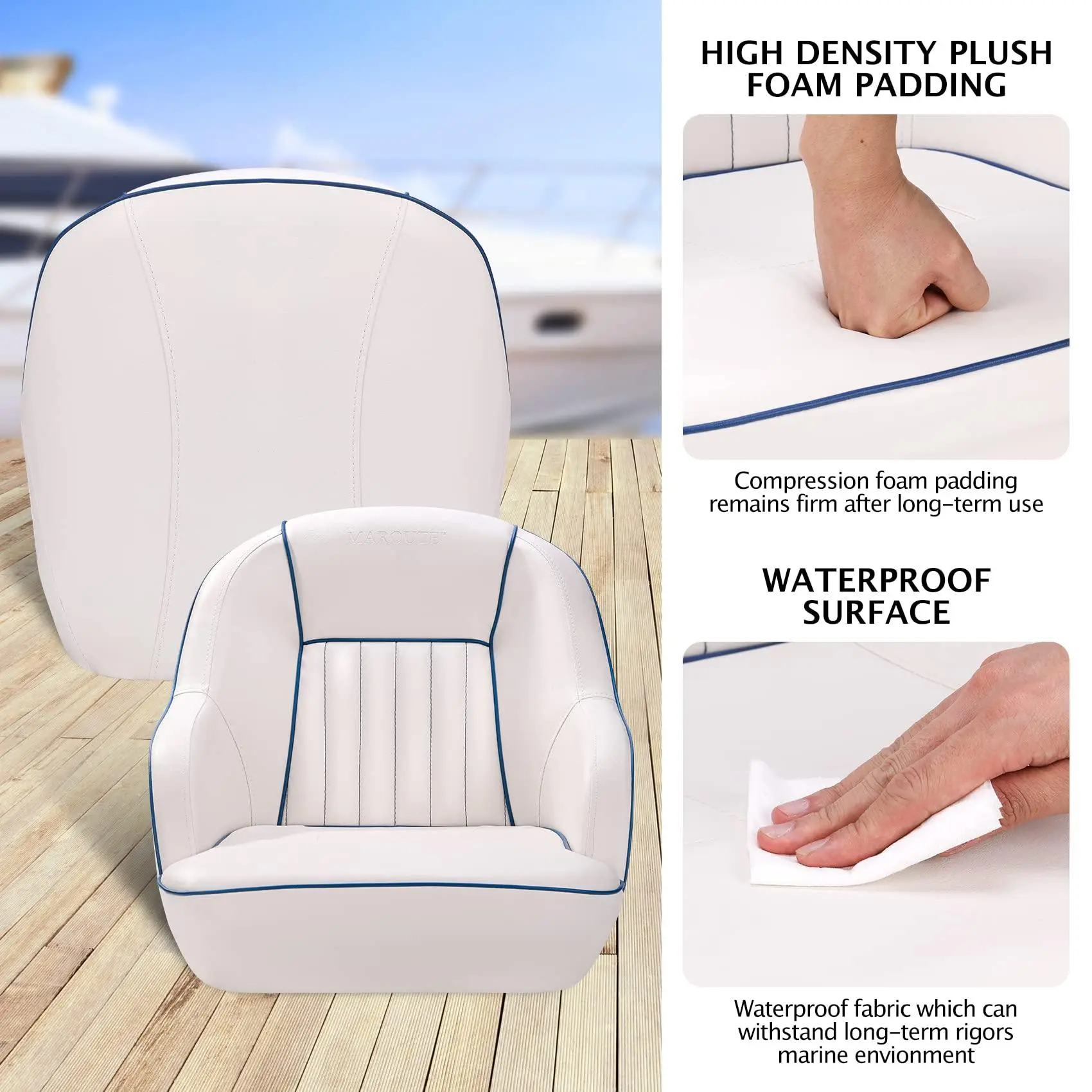 Piping Pontoon Boat Captain Chair, Heavy Duty Captain's Bucket Seat with Ergonomic Backrest & Thick Compression Foam, White & Blue Edge
