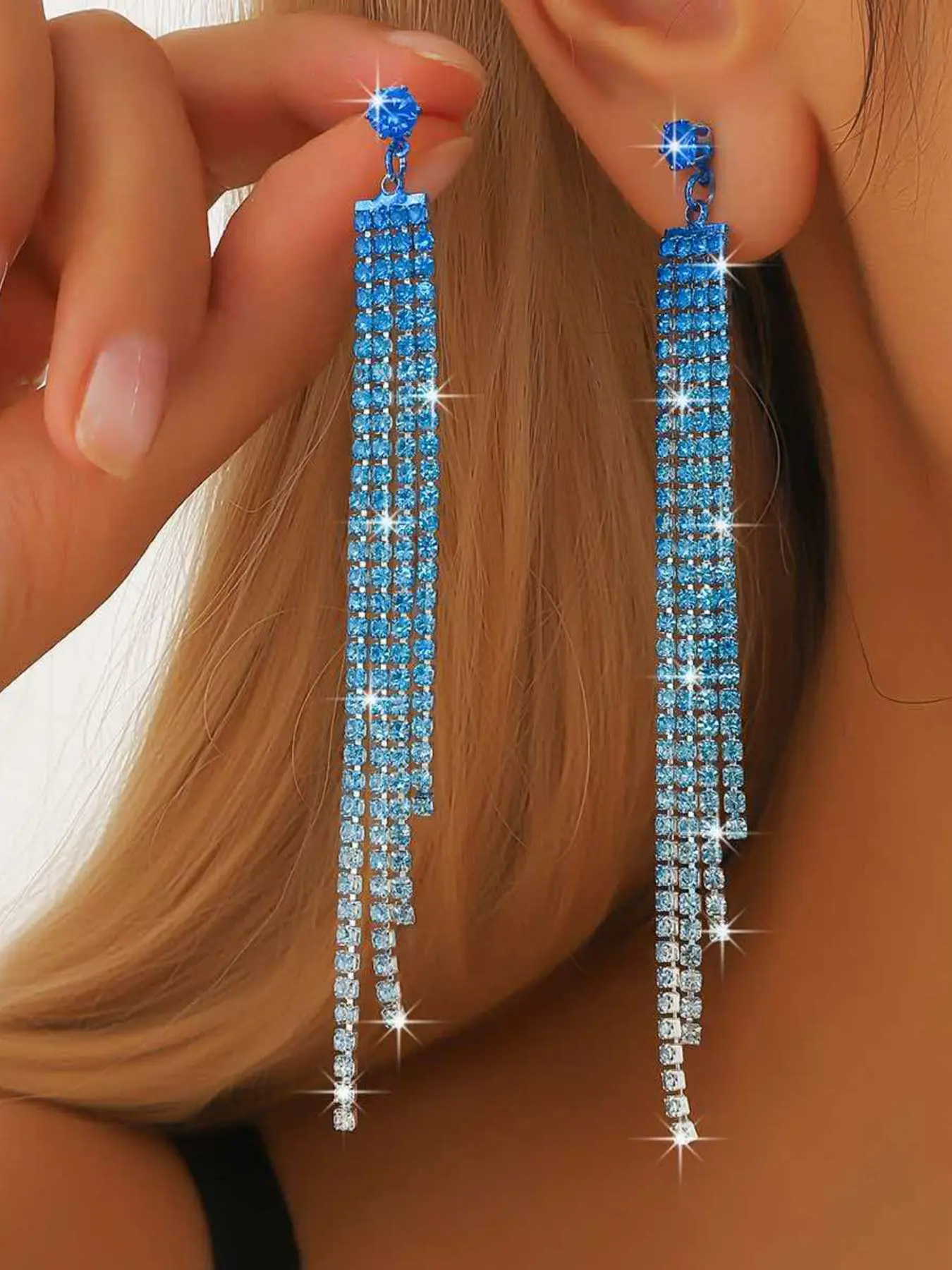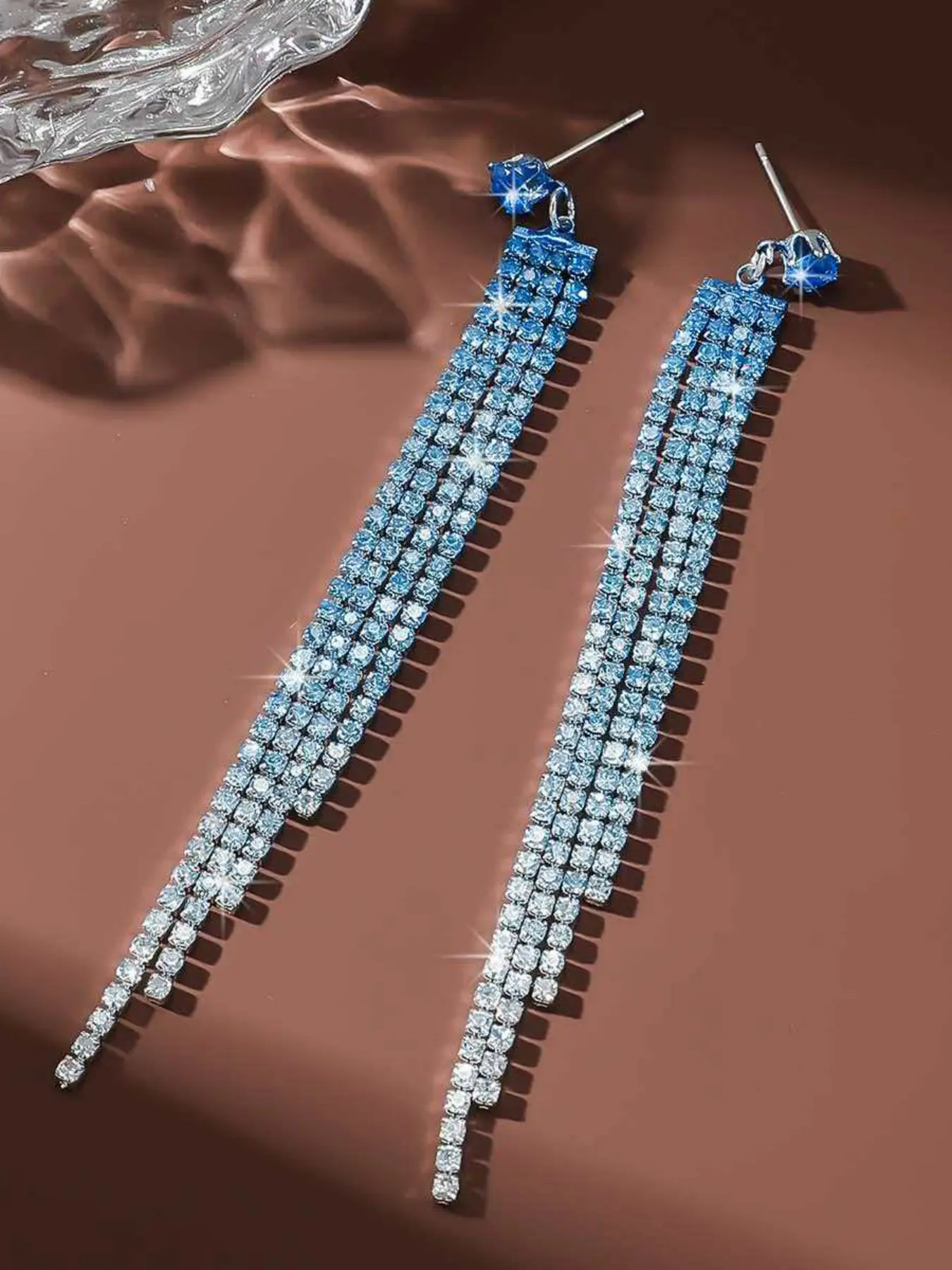Luxury Long Tassel Rhinestone Earrings for Women, Gradient Crystal Fringe Drop Earrings, Sparkling Dangle Earrings, Party Prom Wedding Accessories
