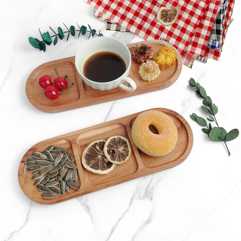1pc Wooden Tray, Divided Tray, Dessert Tray, Multi-Functional Kitchen Display Tray, Storage Organizer, Ideal for Home Use