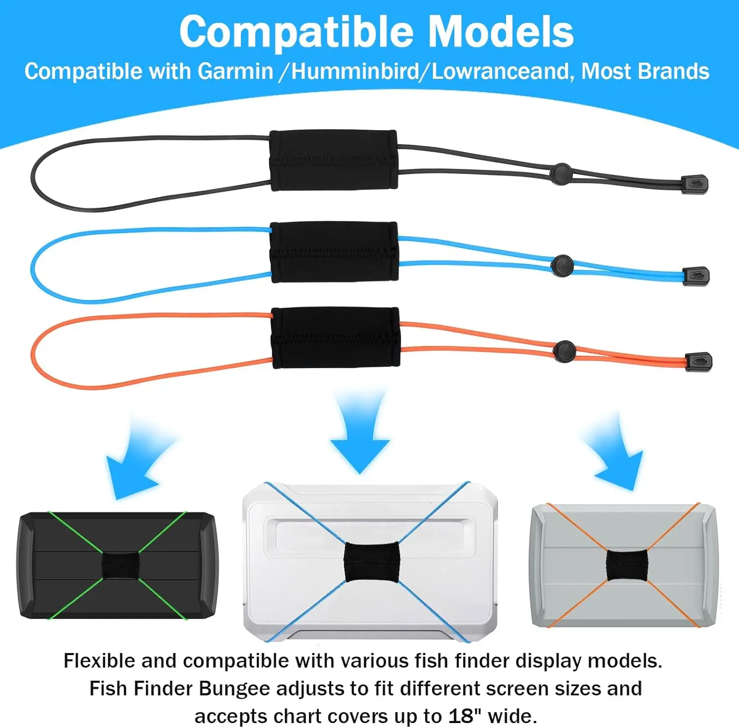 ·Thickened Fishing Finder Cover Straps, Adjustable Fish Finder Bungee for Securing Graph Cover for Travel