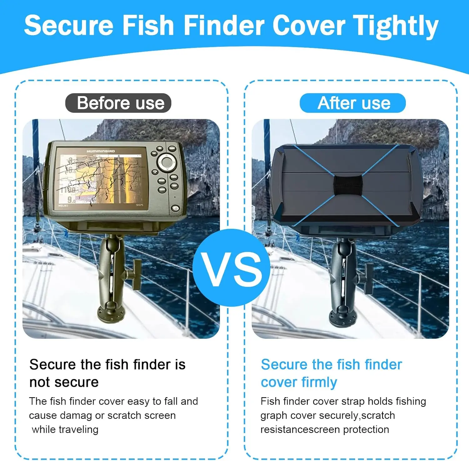 ·【Easy To Install And Remove】The Fish Finder Cover Straps features a convenient one-sided adjustment mechanism, Adjust the push button tension to installation and removal Simple, Effective, without any complicated setup