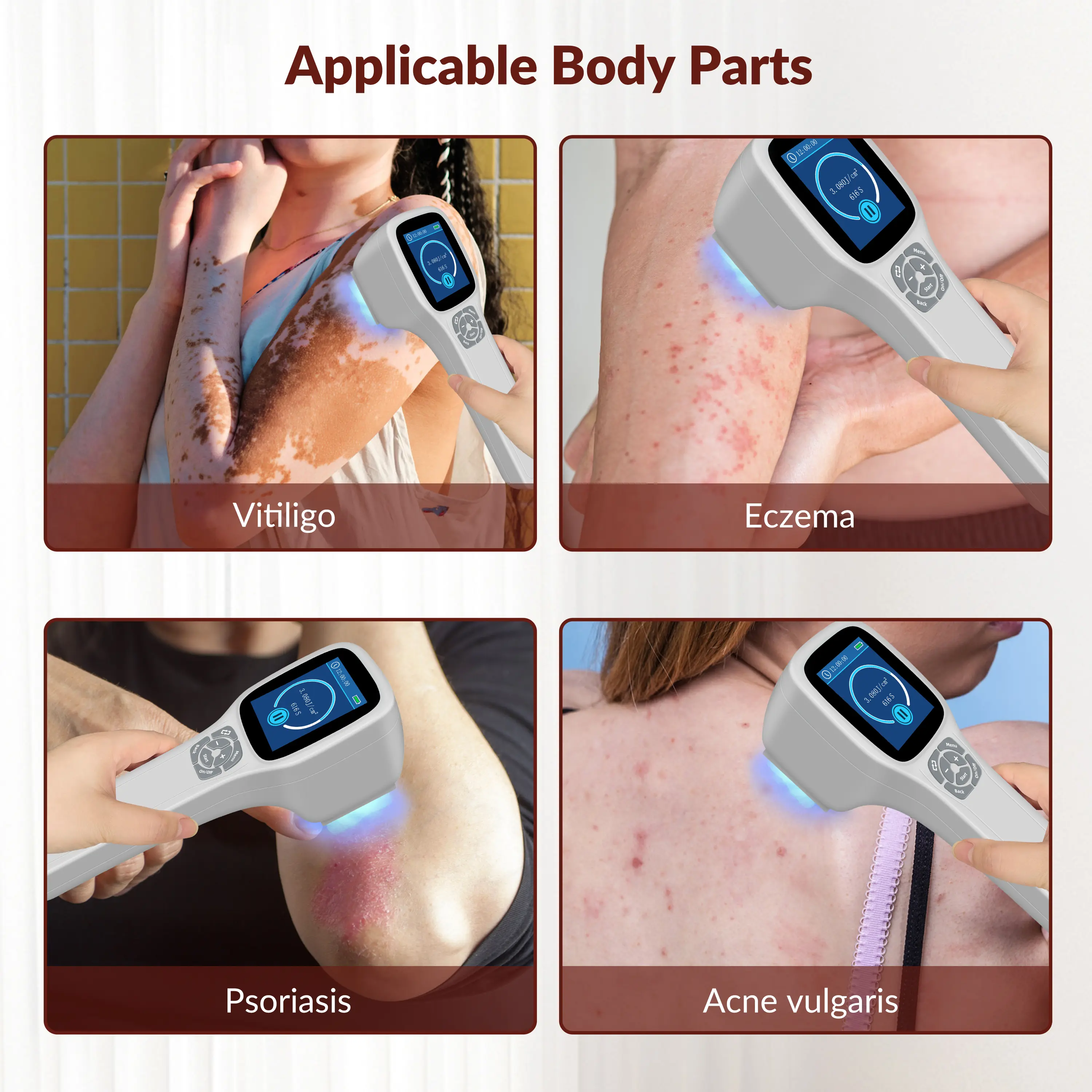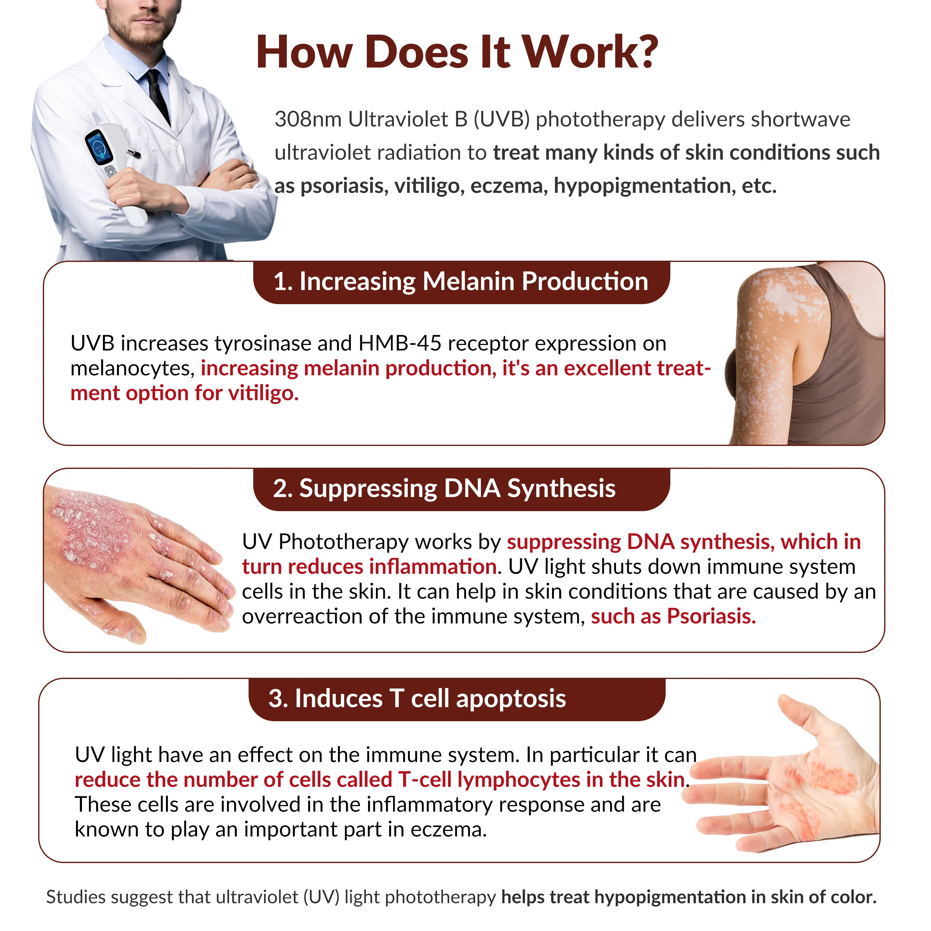 Effect on Skin Conditions: 308nm UVB light is effective for treating various skin disorders, including: