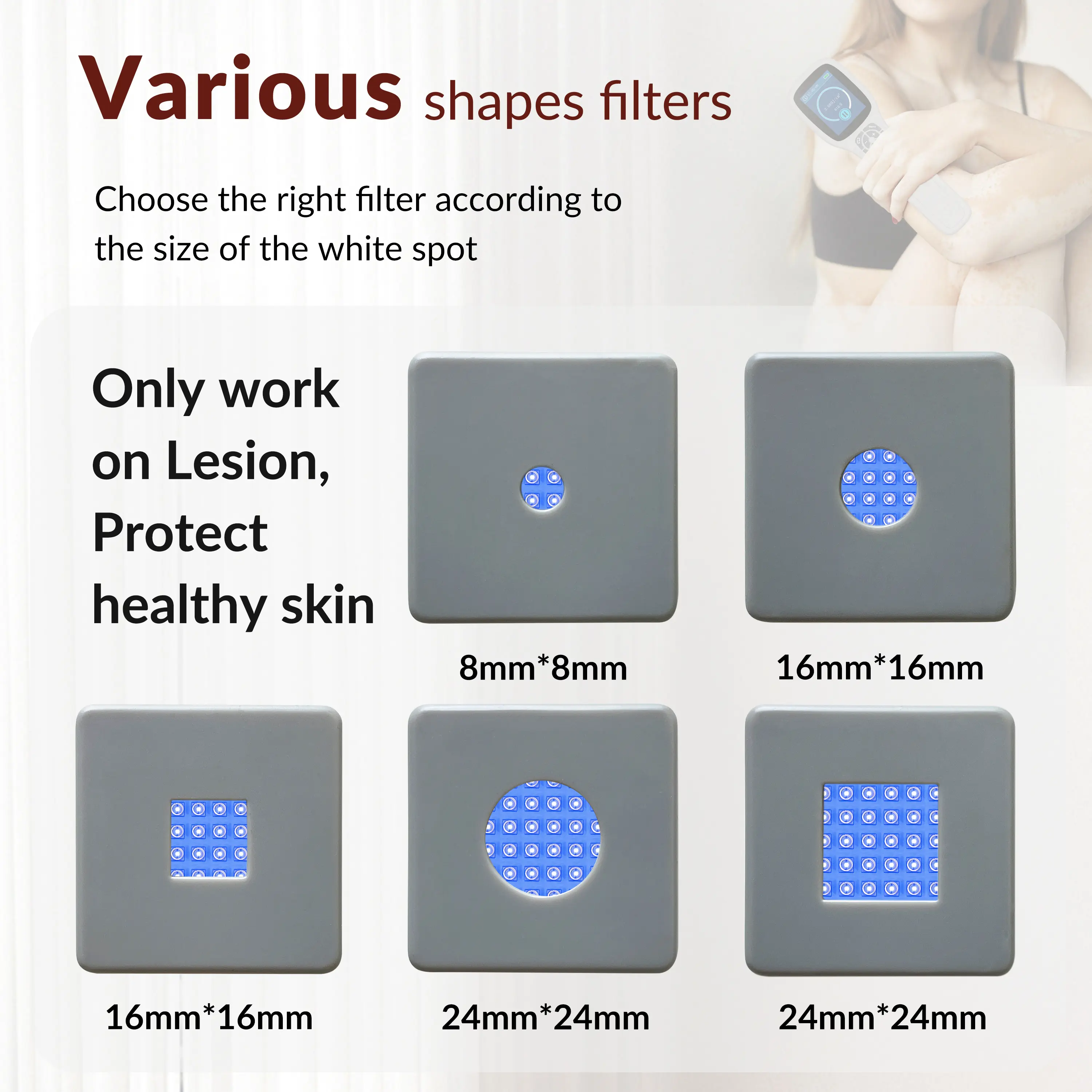 Safe and Efficient - Targeted and no harmless, easy to treat the small lesions where the traditional ones can not reach. It can precisely control the radiation treatment range, and will not shine on the normal skin, avoiding the damage to the normal skin.