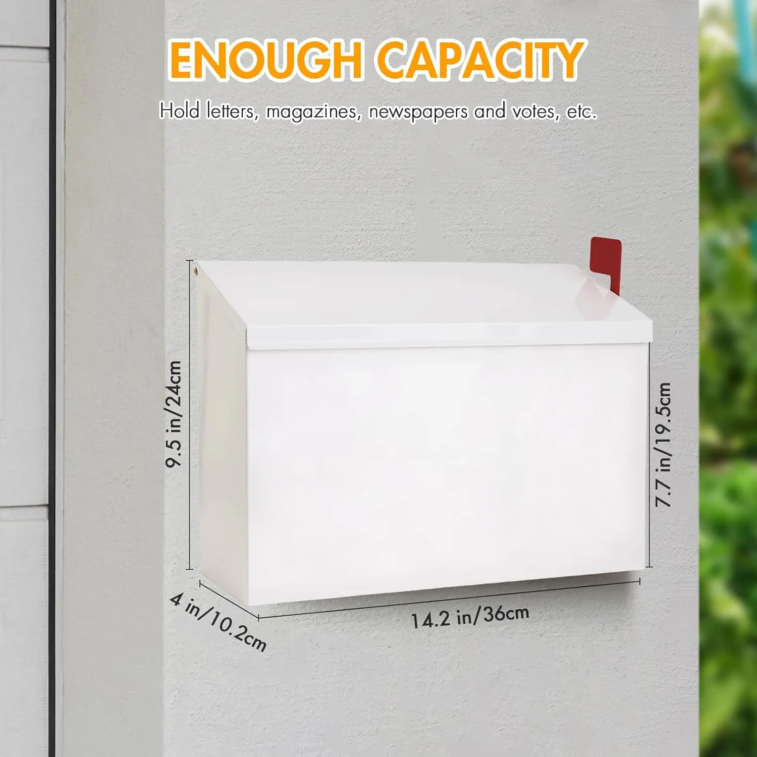 Wall Mount Mailbox for Outdoor Use with Signal Flag, Durable Galvanized Steel Construction for Exterior Post Mounting, High Capacity Rust-Resistant Metal Mailbox for Residential Homes, Includes Three Sets of Mailbox Numbers for Customization, Dimensions 14.2 Inches by 9.5 Inches by 4 Inches in Classic White Finish