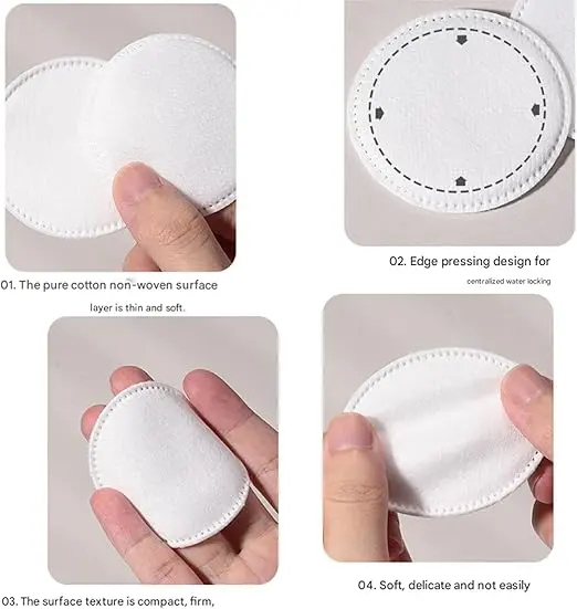 ·Multi-functional cotton pads: These round cotton pads are perfect for facial cleansing, lip cleansing, and applying toner and other liquids, making them very convenient