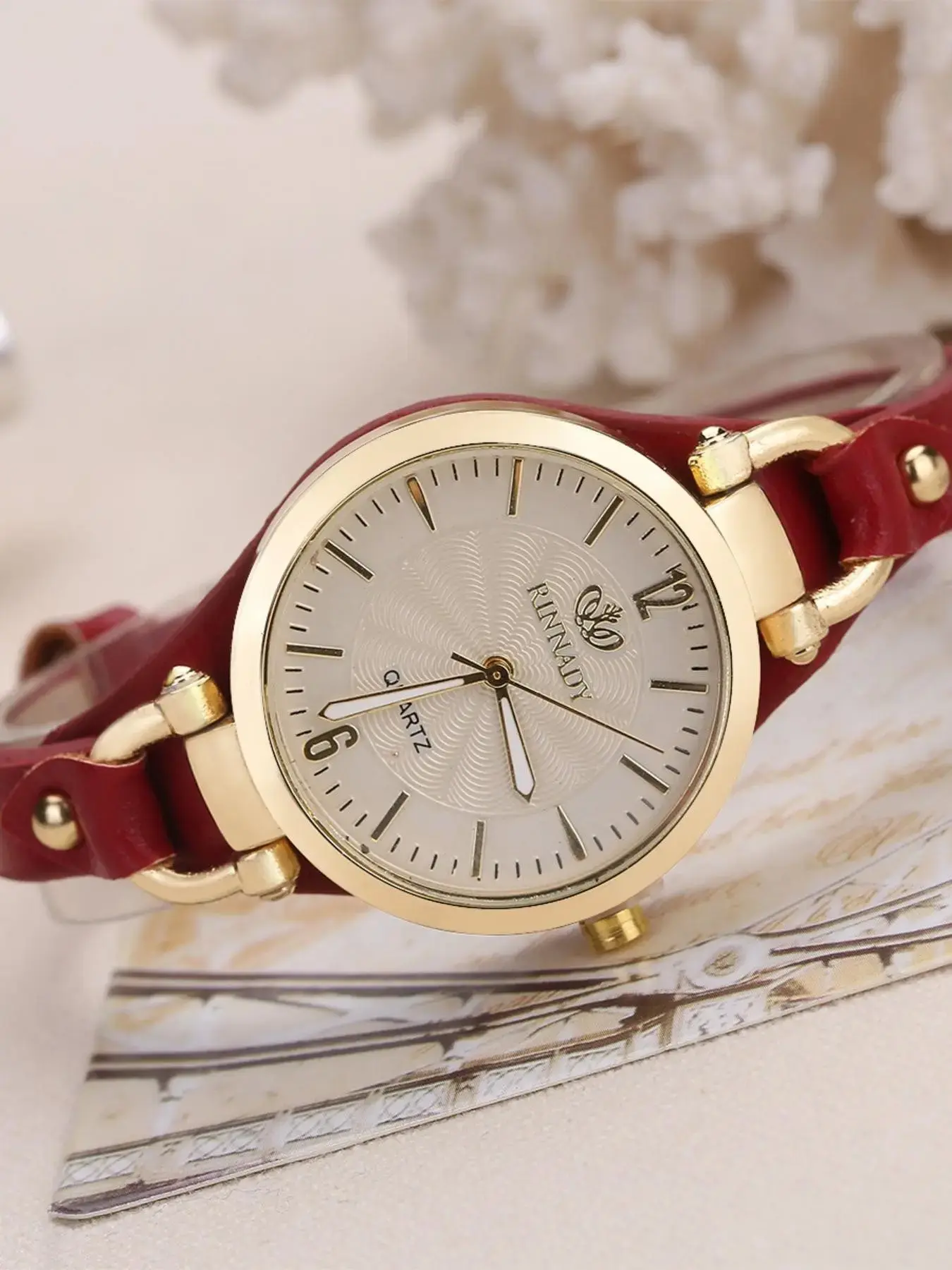 1-piece set of women's fashionable Pu leather strap quartz watch, casual simple round dial buckle watch