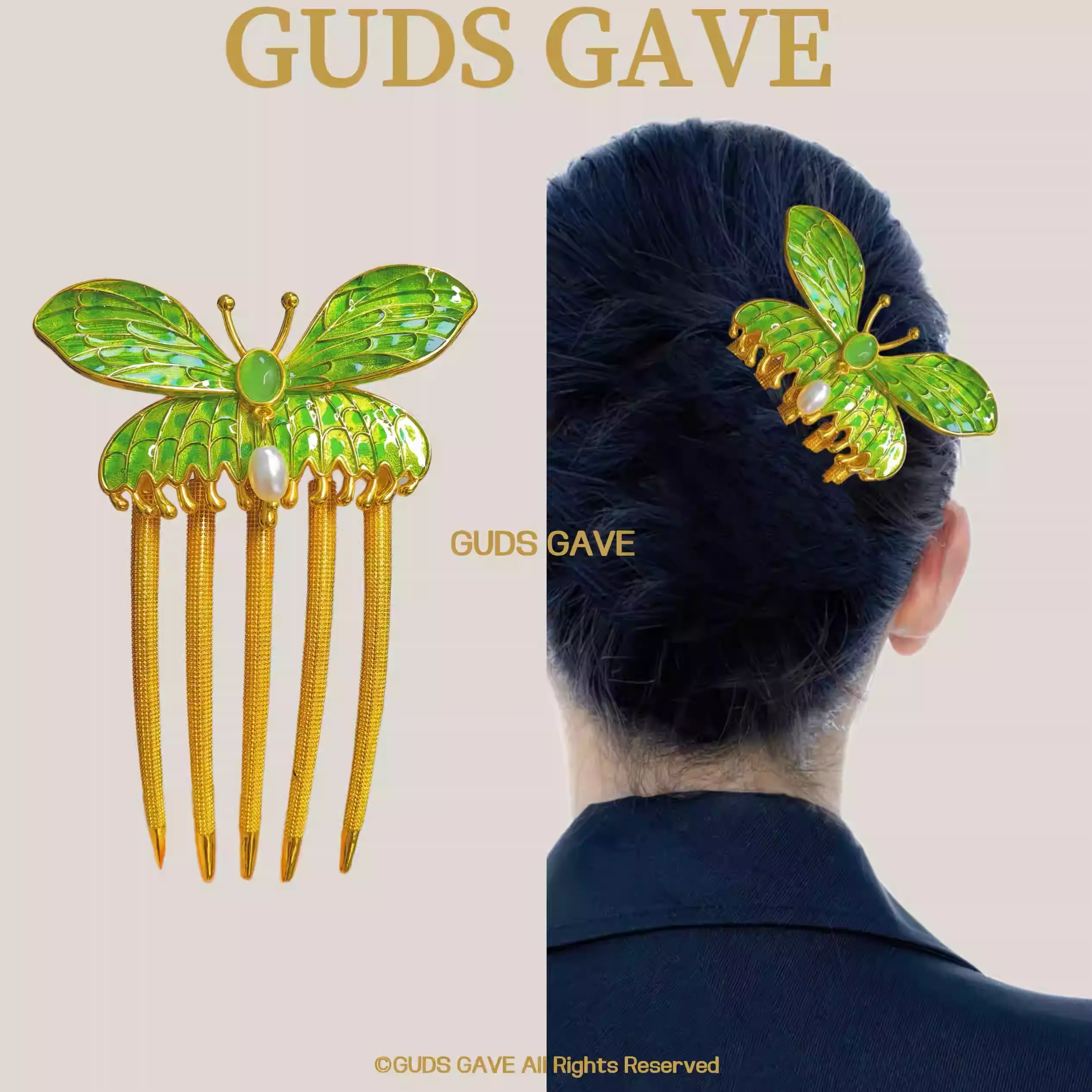 GUDS GAVE exquisite hair comb features a dreamy butterfly design, perfectly embodying elegant oriental aesthetics and the minimalist charm of new Chinese style.