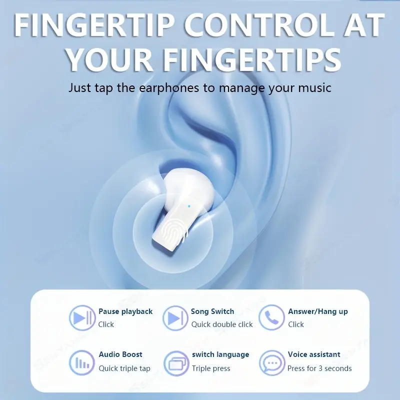 New true wireless 5.3 in-ear smart comfortable mini earphones, video earbuds, music couple TWS HIFI heavy bass 9D stereo high-definition call earphones, suitable for Android and Apple phones, sports earphones, sleep earphones