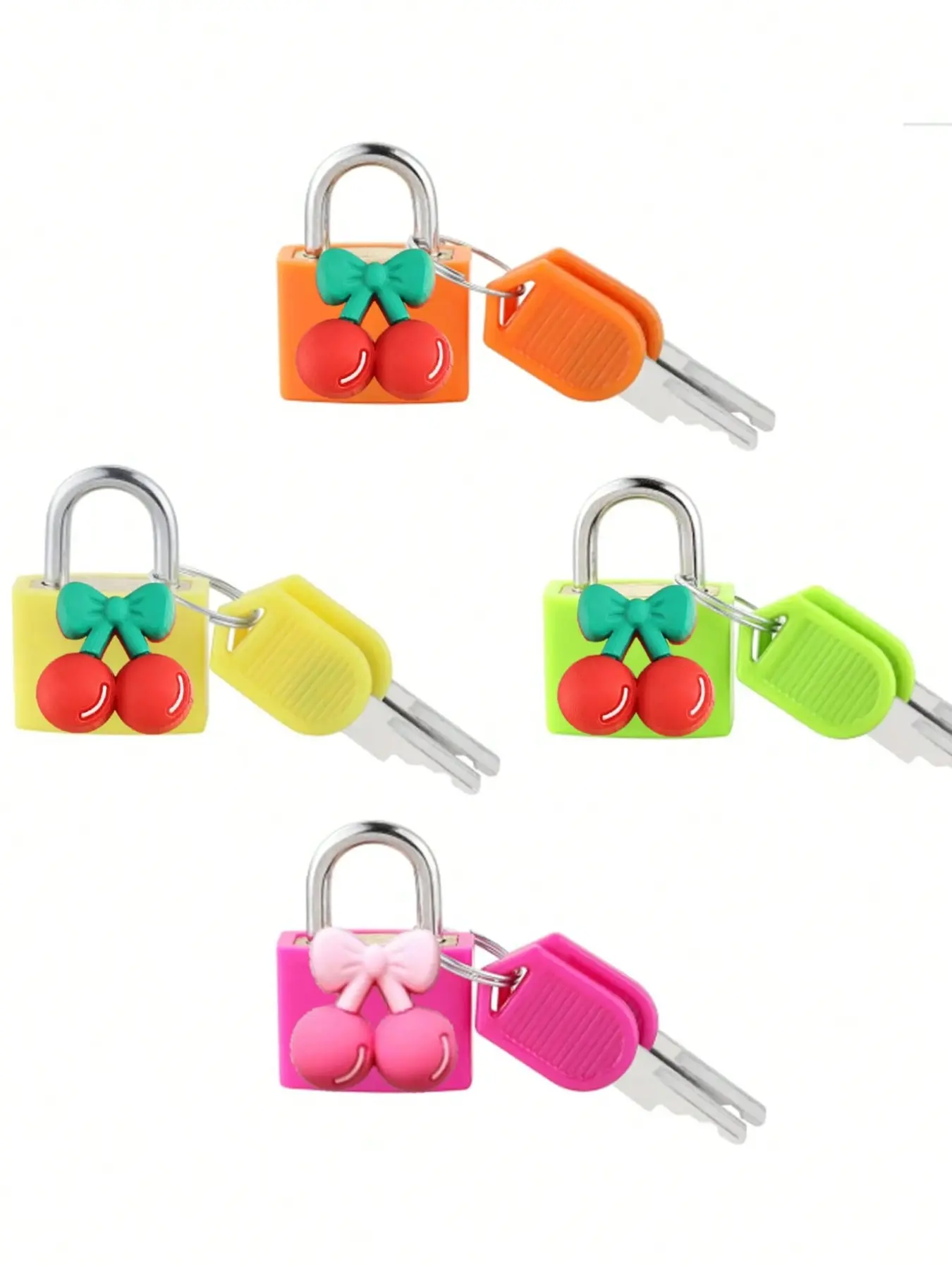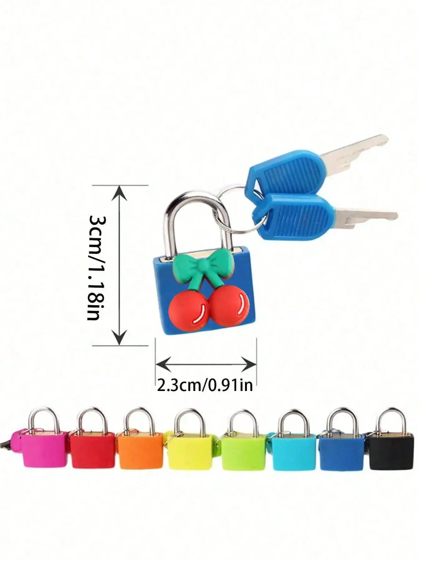 5. Luggage lock, small trolley suitcase padlock with key, copper core with sturdy plastic shell (cherry pattern for easy matching), compact and solid, mini suitcase padlock, travel bag metal key lock, durable brass lock core