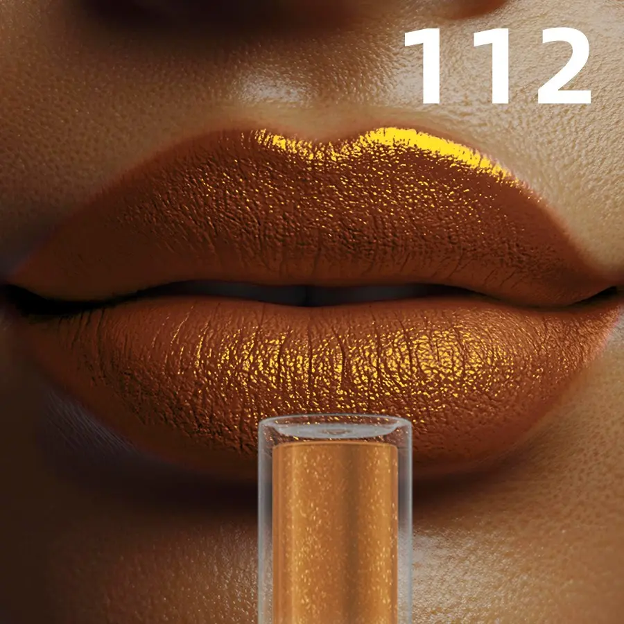 Long-lasting liquid lip stick, golden shimmer high pigment.