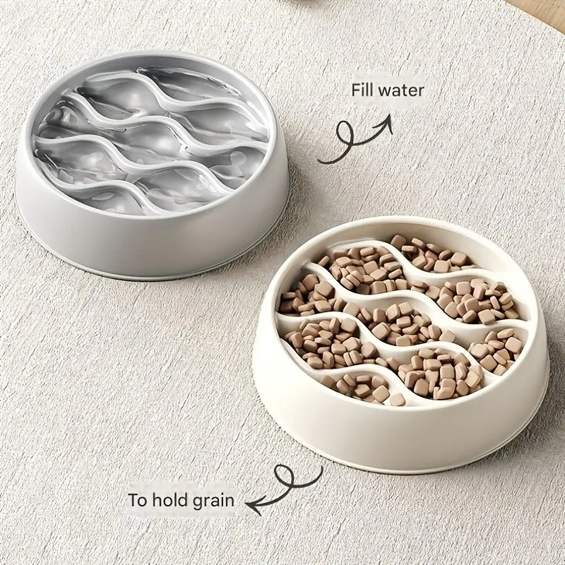 Multi-Purpose Cat Bowl, Thickened Anti-Choking Slow Feeder, Splash-Proof Double Bowl, Pet Food Dish, Supplementary Food Bowl