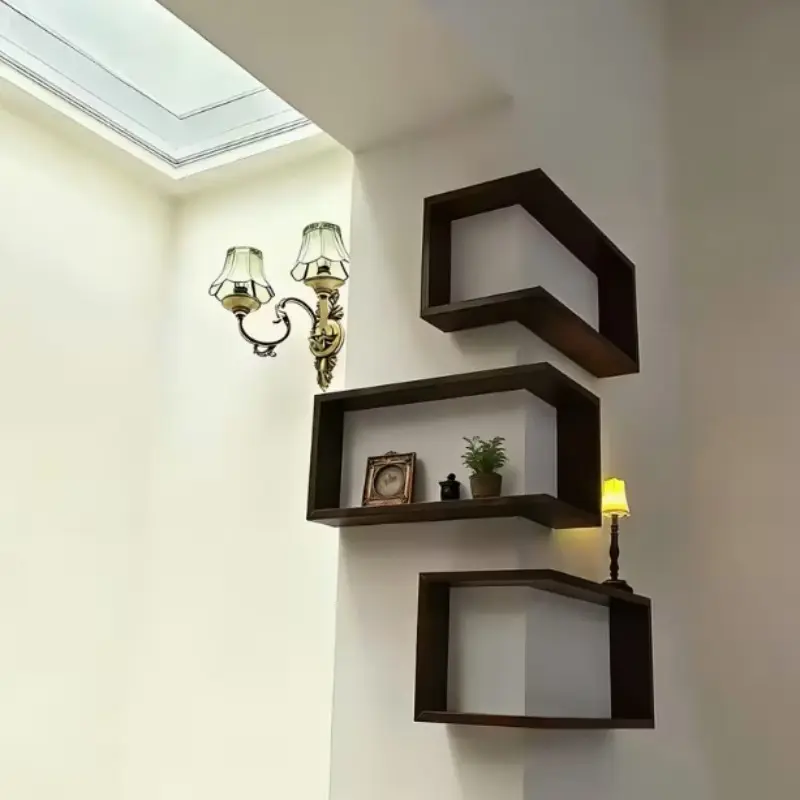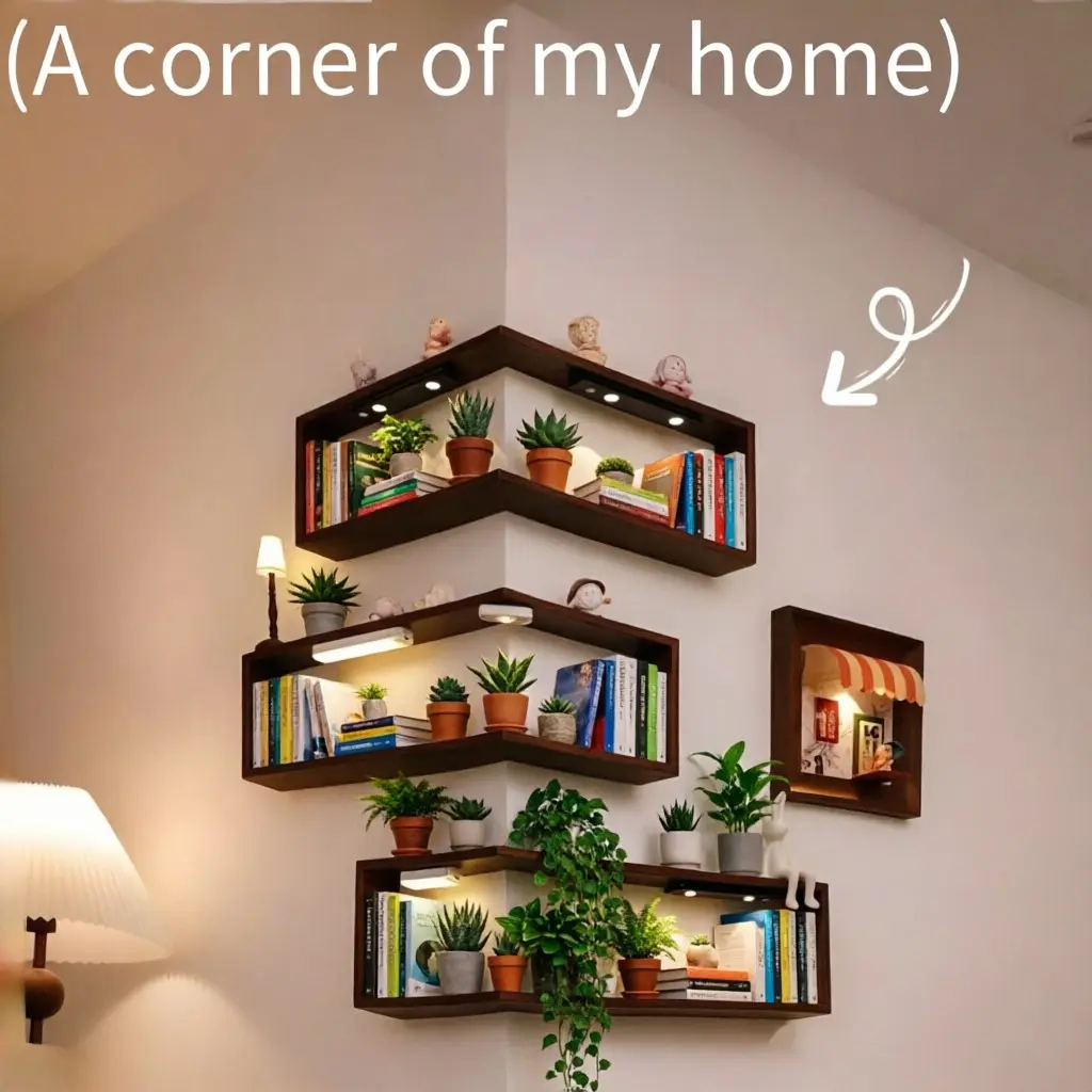 Wall Corner Shelf for Living Room and Bedroom, Vintage Style Floating Storage Rack, Versatile Decorative Organizer for Plants and Books