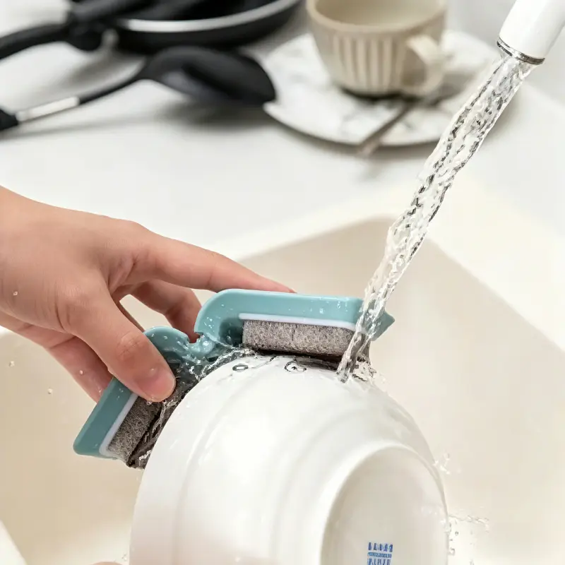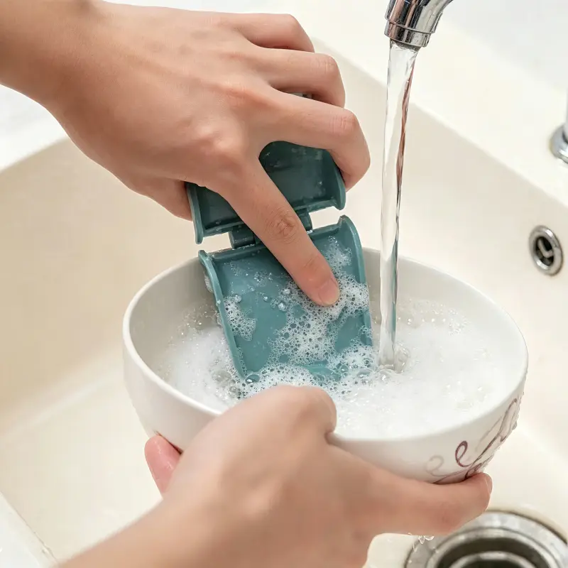 Thickened food-grade PP shell, wear-resistant abrasive scouring pad, foldable design, suitable for commercial and home use.