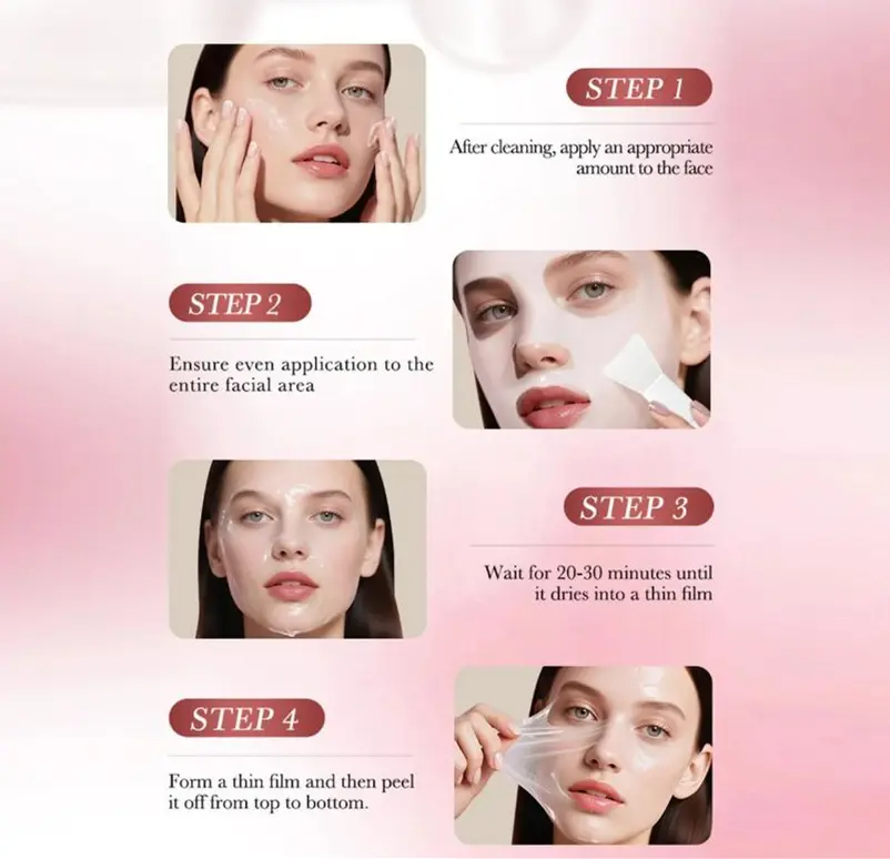Easy Peel-Off Mask for Daily or Night Care -- Thetransparent tear-off formula applies smoothly and peels offcleanly without residue-perfect for quick skincare routinesat home or before bed
