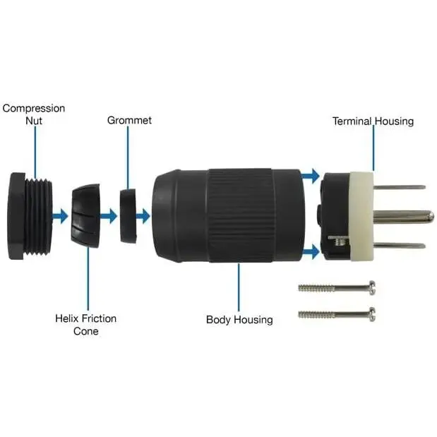 For replacing 50Amp plugs on Extension cords, RV power cords, range, and generator cords