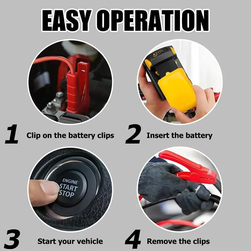 Jumper Cable Clamps with Adapter for Dewalt 20V Battery, 2FT 8AWG Portable Battery Dewalt Jumper Starter Automotive Booster Cables Power for Car Jump Starting Using Tool BatteryNot Included