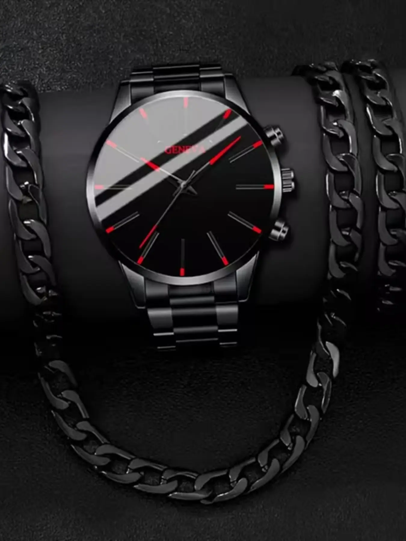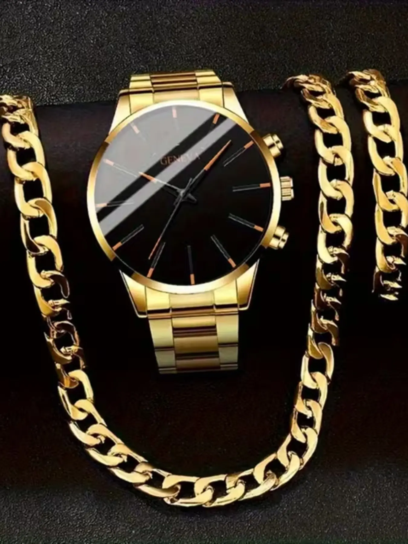 3-Piece Men's Watch and Necklace Bracelet Set - Gold Luxury Quartz Watch with Matching Chain, Casual Simulation Watch,/Father's Day Gift, Affordable Watch Set