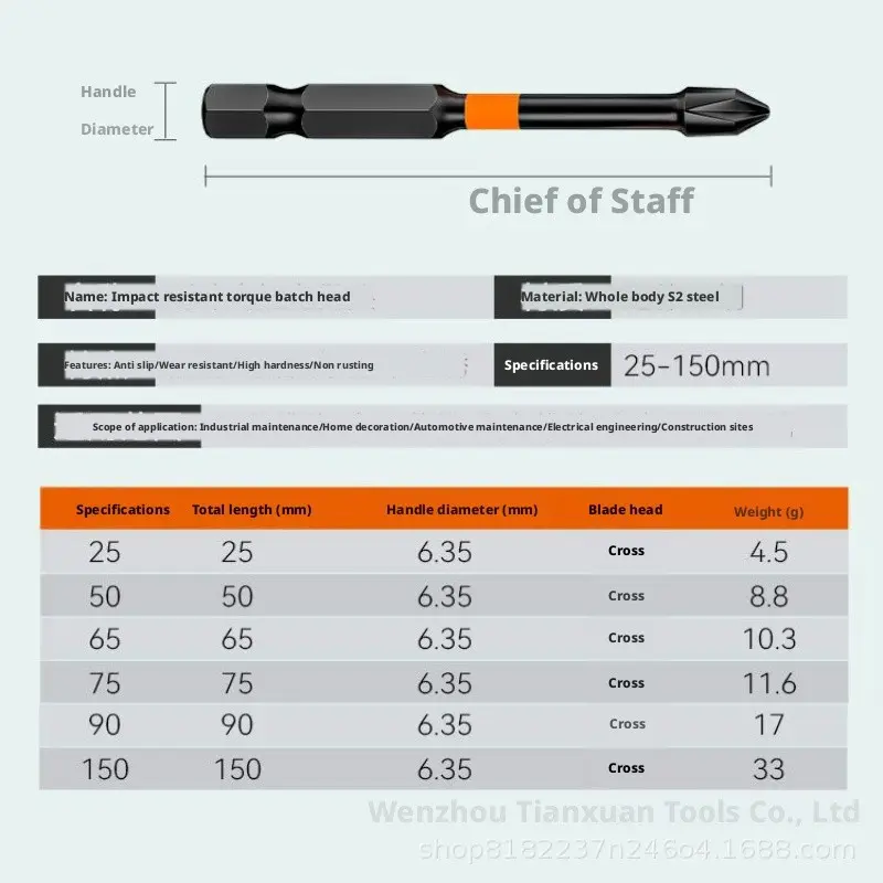 S2 Steel Strong Magnet Bit for Impact Drivers, High Hardness, Durable, Ideal for Self-Drilling Screws, Impact Driver Accessories, Hardware Tools
