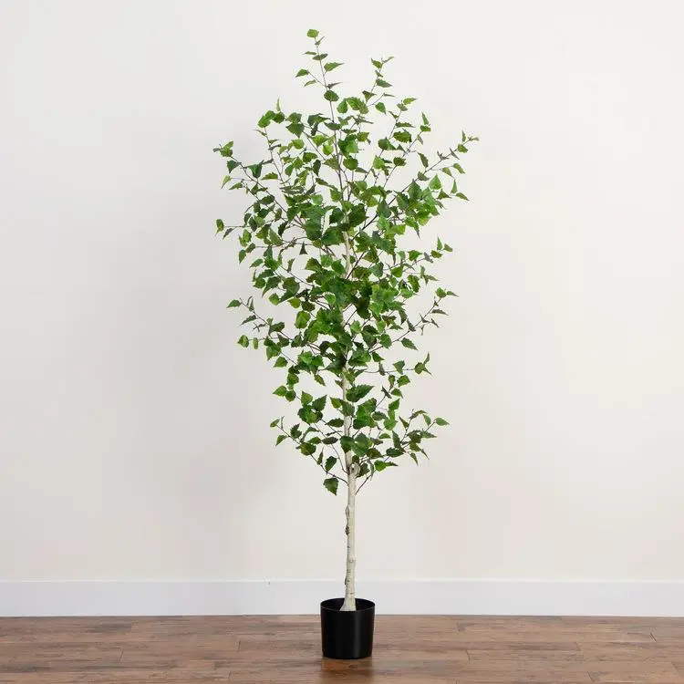 Experience the serene beauty of birch trees throughout the year with these nature-inspired artificial birch trees. Expertly crafted by experienced horticulturists using high-quality materials, these trees capture the essence of real birches with their light-hued bark and leaves oriented in various directions, mimicking nature's diversity. The branches are designed to be flexible, allowing you to shape them for a tailored, unique look that suits your space. Standing at an impressive 7-Ft tall from a nursery planter, these birch trees are perfect for adding a touch of life and tranquility to any room, regardless of style or size.