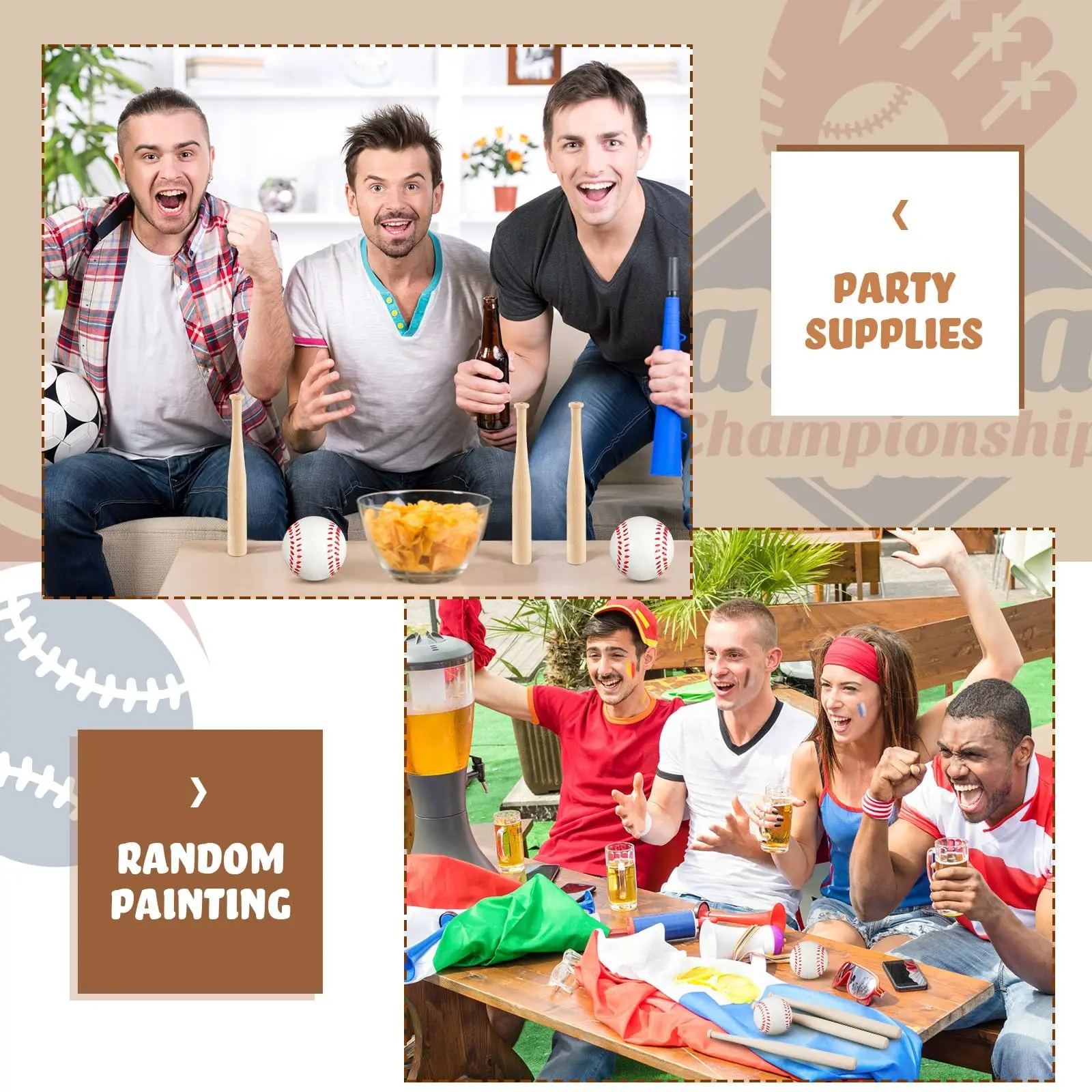 Small gifts for baseball parties: Unfinished wooden sticks and handmade baseball balls can be used to decorate your space, such as living rooms, classrooms, schools, offices, and other indoor and outdoor spaces; Painted or decorated baseball bats are props for baseball themed parties