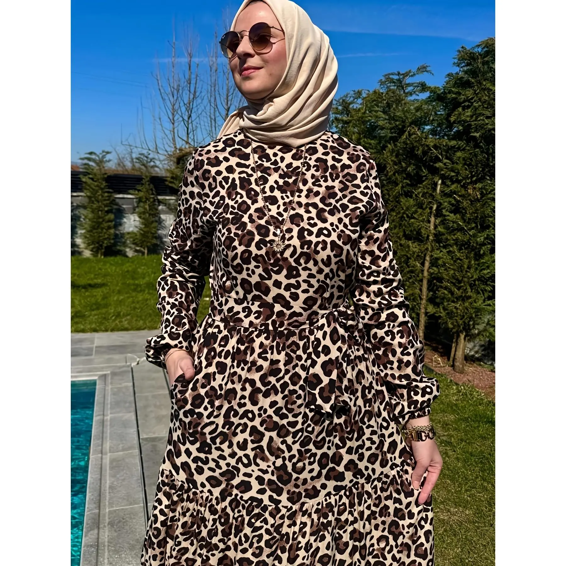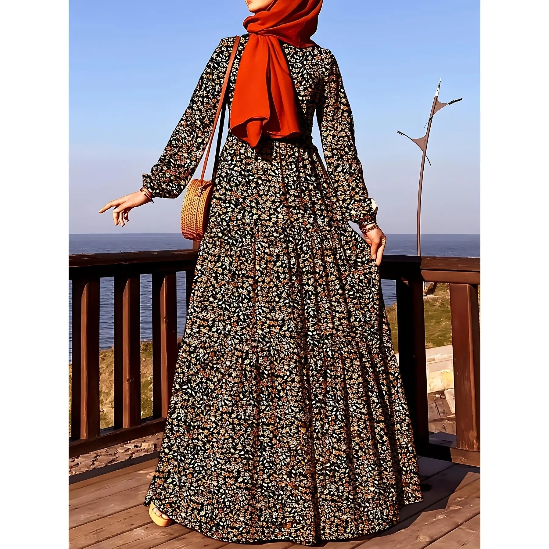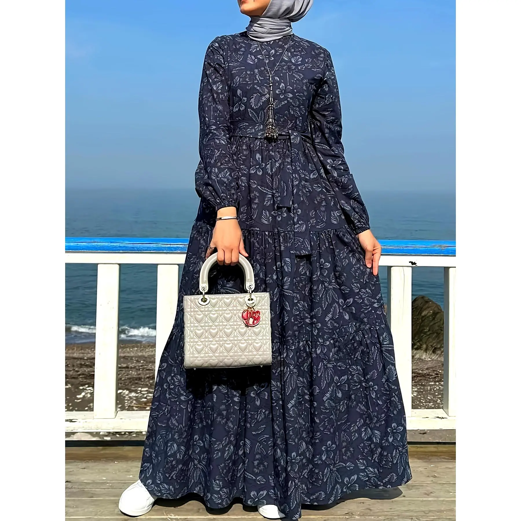 2023 New Muslim Middle Eastern Round Neck Printed Elegant Abaya