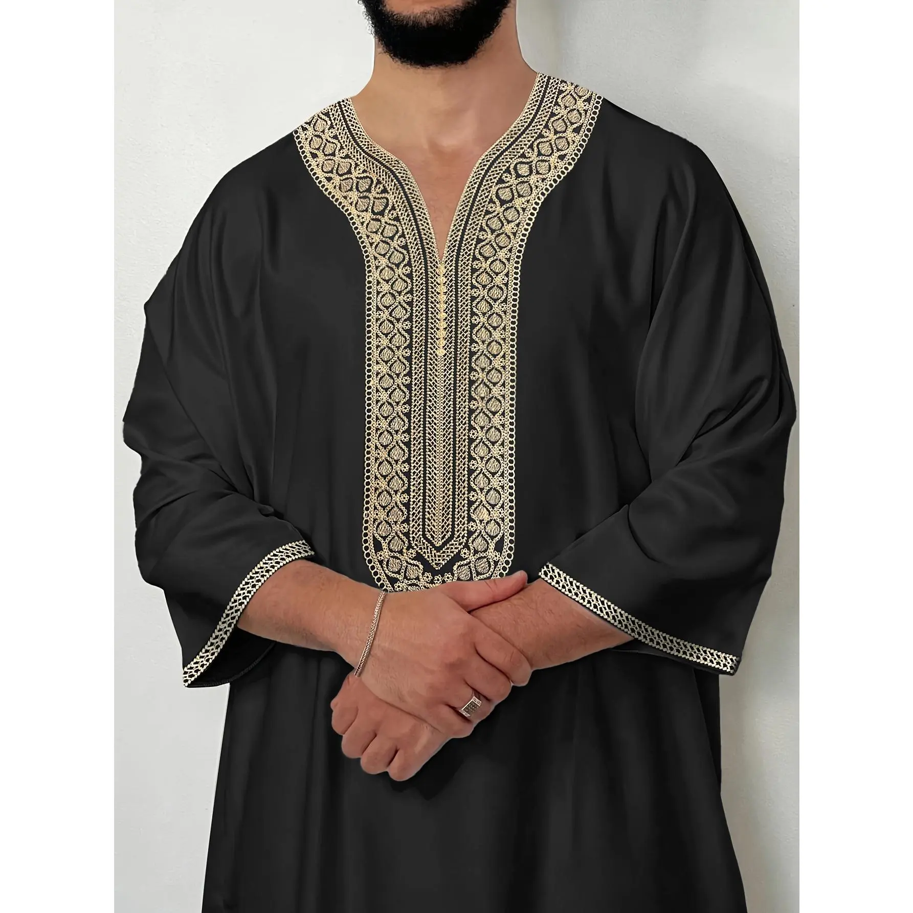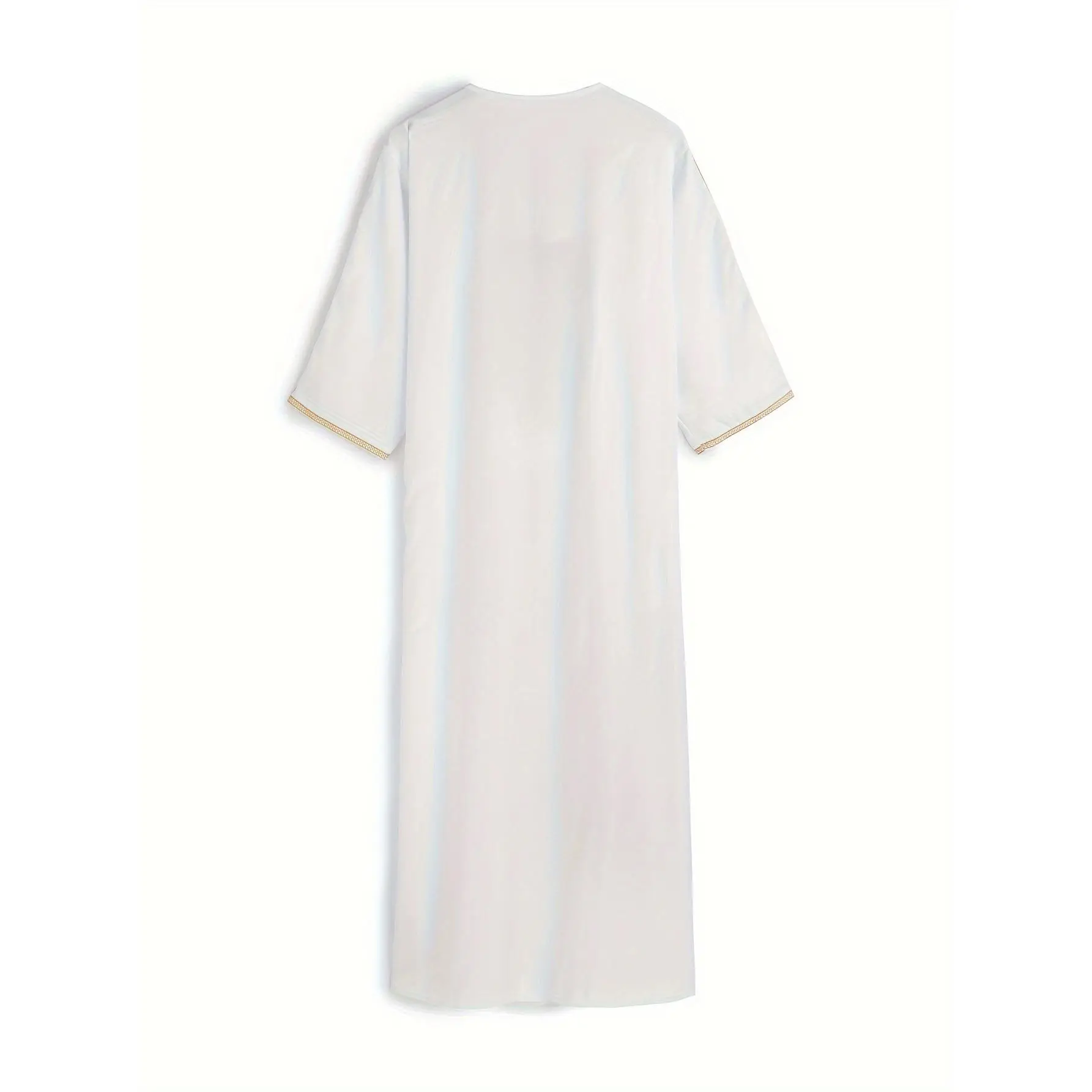 [Traditional Moroccan Robe] Zhiyu's Choice Traditional Moroccan Men's Robe | Golden Thread Embroidery, Breathable Polyester, Loose Fit Elegant Design for Worship, Holiday & Special Occasion Wear