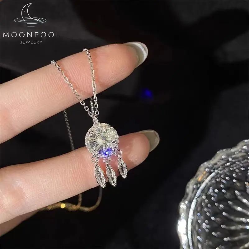 【#24】Sparkling Dreamcatcher Necklace with Adjustable Chain, S925 Sterling Silver Moissanite Feather Pendant, Radiant Boho Jewelry, Luxury Gift for Her