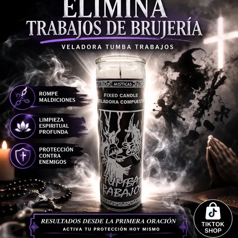 Protege tu energía y libera tu camino con nuestra poderosa veladora Tumba Trabajos. Esta veladora ha sido preparada especialmente para ayudar a romper trabajos espirituales, eliminar brujería, alejar malas energías y cortar influencias negativas que estén afectando tu vida.