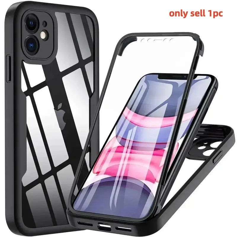 360 Full Body Front+Back Clear Case For iPhone 16 15 14 13 11 12 Pro Max Silicone Shockproof Cover