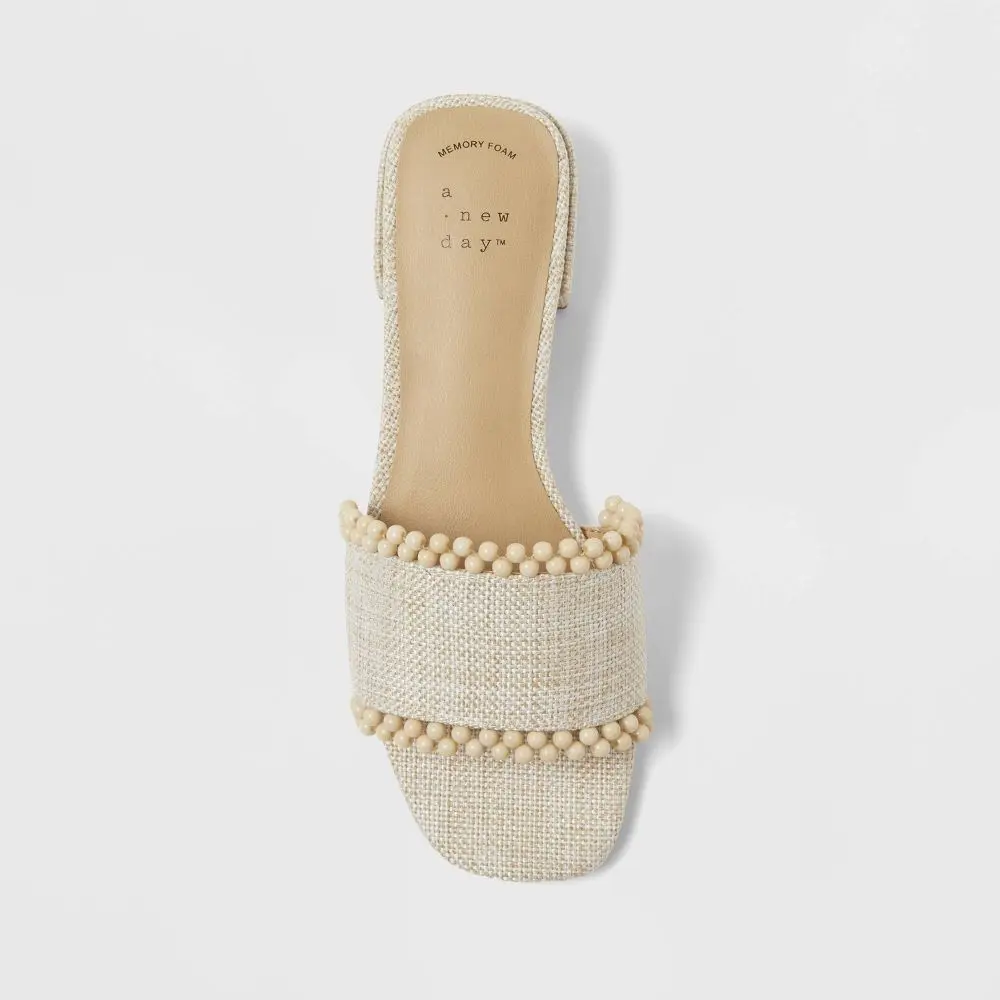 Step into effortless elegance with these Lottie Sandals with Memory Foam Insole from A New Day. These slip-on sandals feature a single wide band and boasts a memory foam insole to help reduce foot fatigue and offer all-day comfort. Designed with an open round toe, these medium-width sandals also boast 1.25-inch block heels for a slight lift to your height.