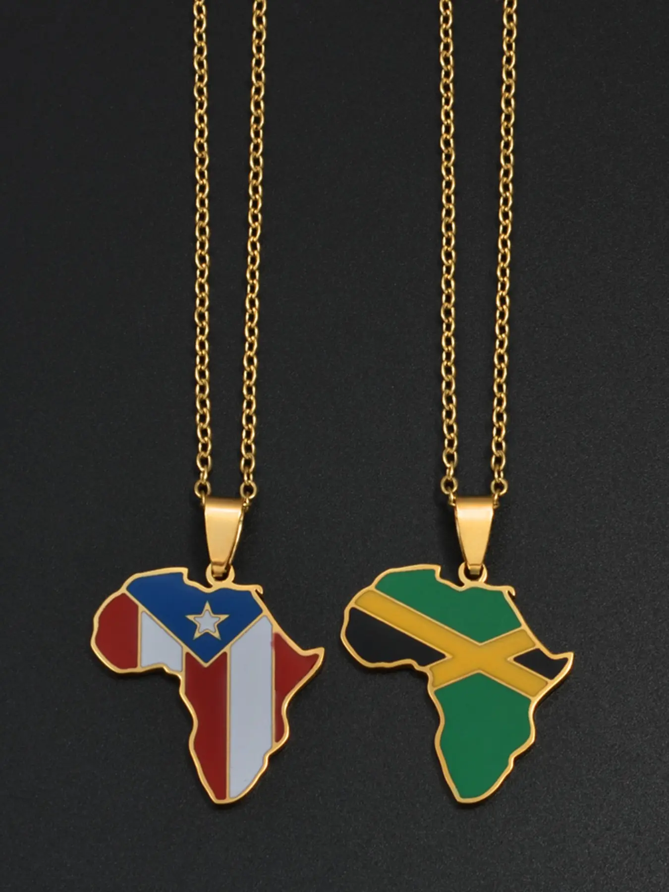 Africa Map With Jamaica Haiti Puerto Rico PR Flag Pendant Necklaces For Women Jewelry