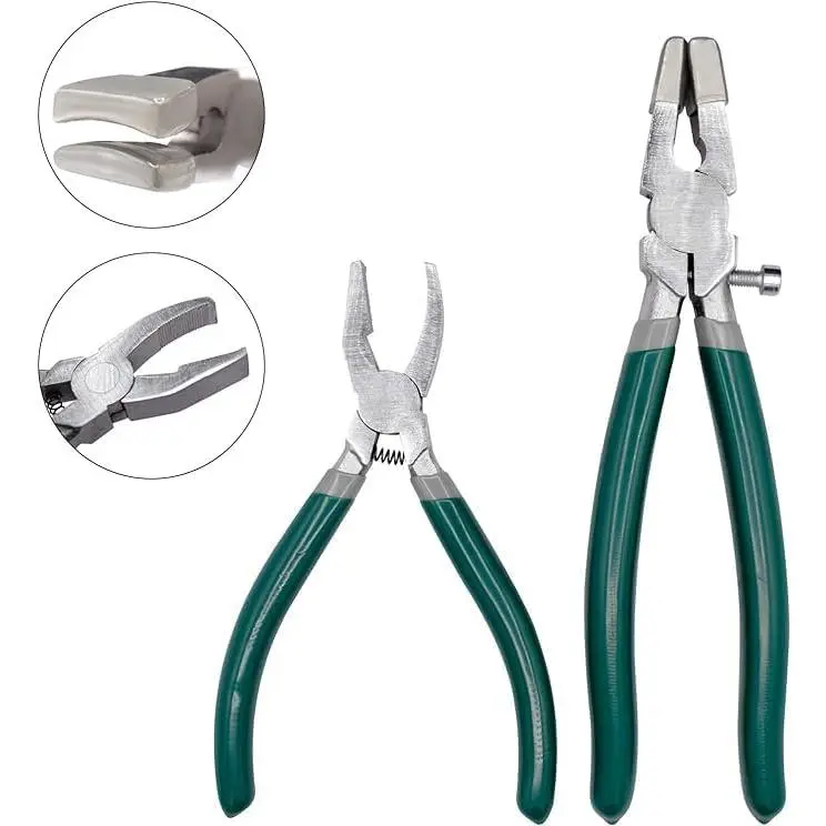 10-Piece Professional Glass Cutting Tools Set with Heavy Duty Wheeled Glass Cutter, Precision Tile Nippers, Running Pliers, and Curved Jaw Breaker Grozer Pliers for Stained Glass, Mosaics, Fusing, and Glass Breaking Projects