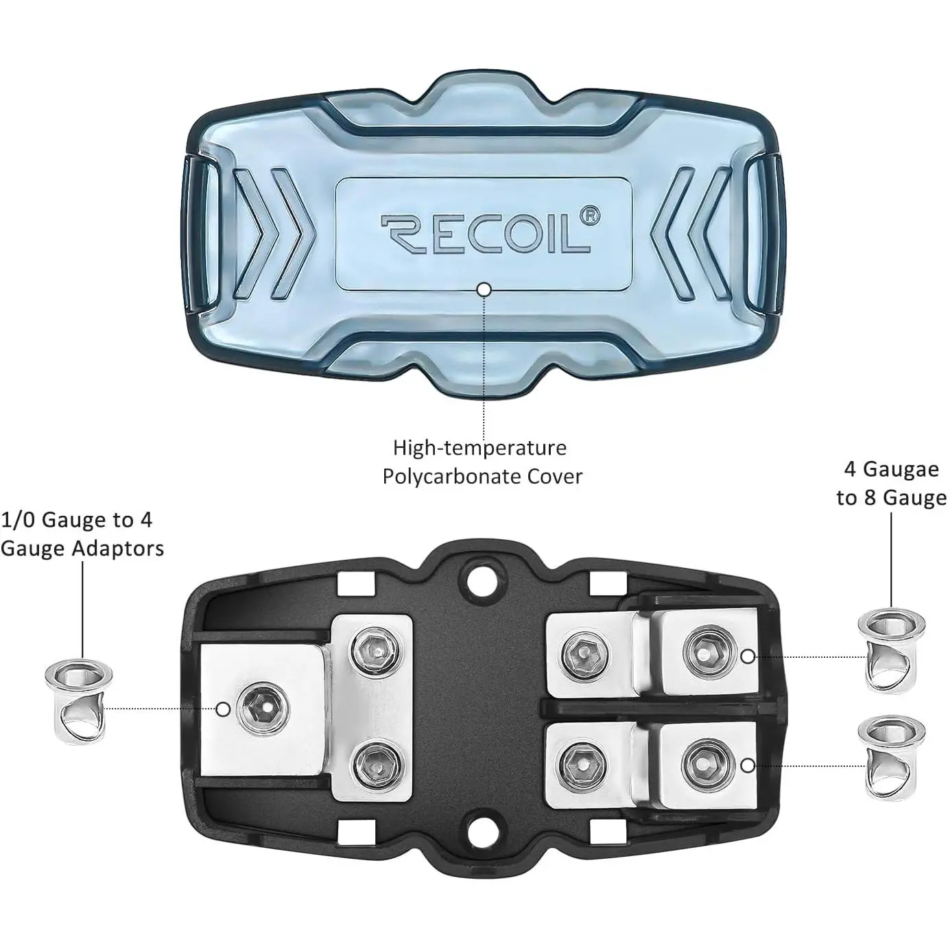 2 Way Mini-ANL Fused Distribution Block with Ground Terminal, Dual Amplifier Power & Ground Combo Kit, 0/2/4 Gauge In/Out, Reusable Heavy-Duty Fuse Block, Secure Connection for Car Audio Systems