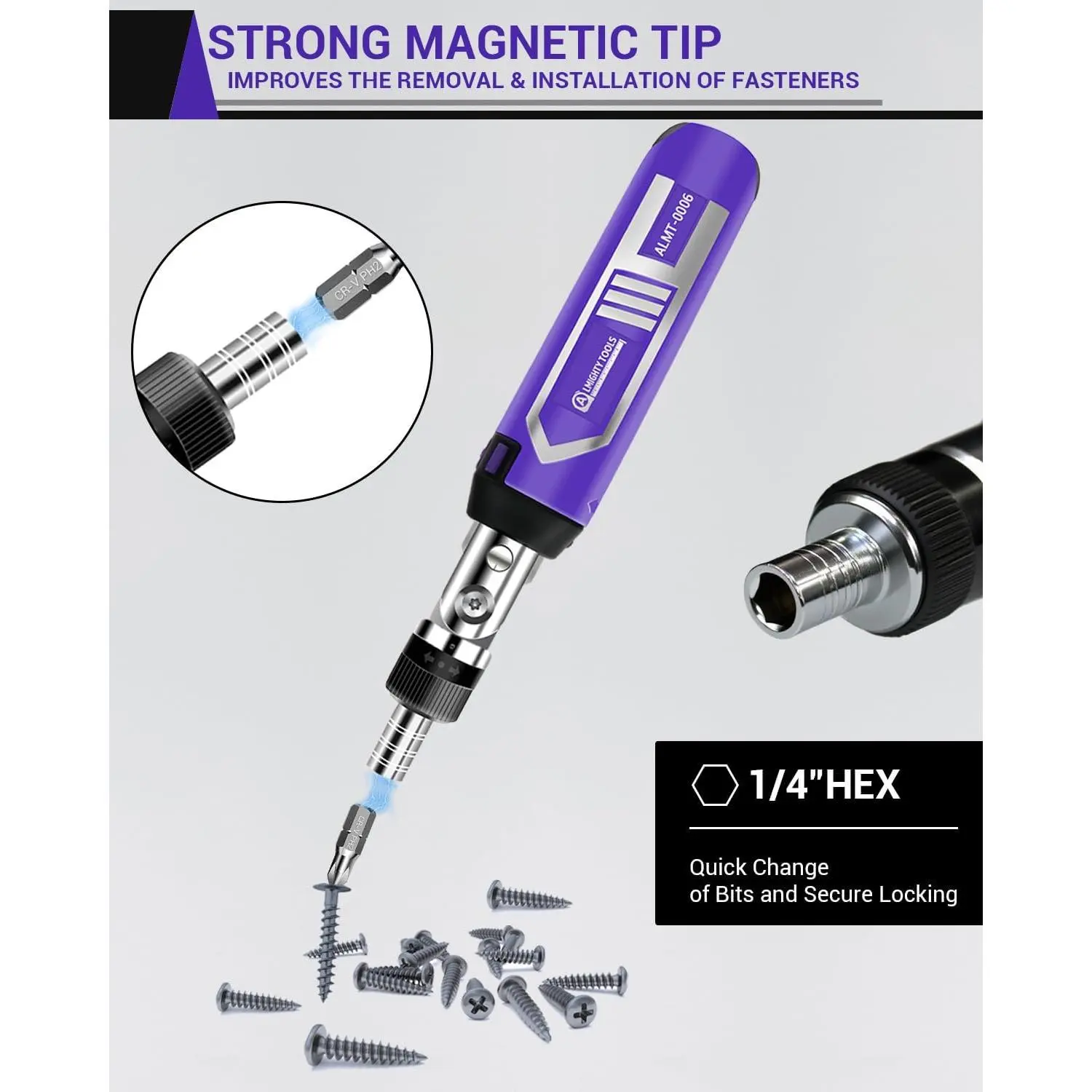 Three-Way Ratchet Design: Multi bit screw driver breaks through the limitations of the direction, convenient switch for clockwise (fastening) and counter clockwise (loosening) ratcheting and locking position (as standard multi bit screwdriver), saves time and effort, enables easier all-day driving.