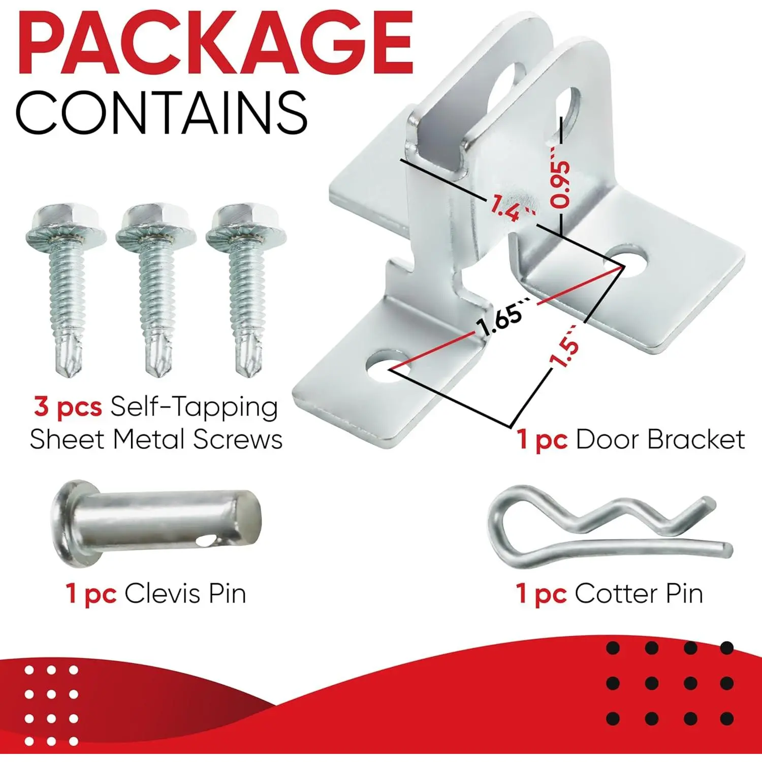 Durable Garage Door Bracket: Garage door parts include 1 garage door replacement bracket, 1 clevis pin, 1 cotter pin, 3 self-tapping sheet metal screws/fasteners.Installation manuals provided.