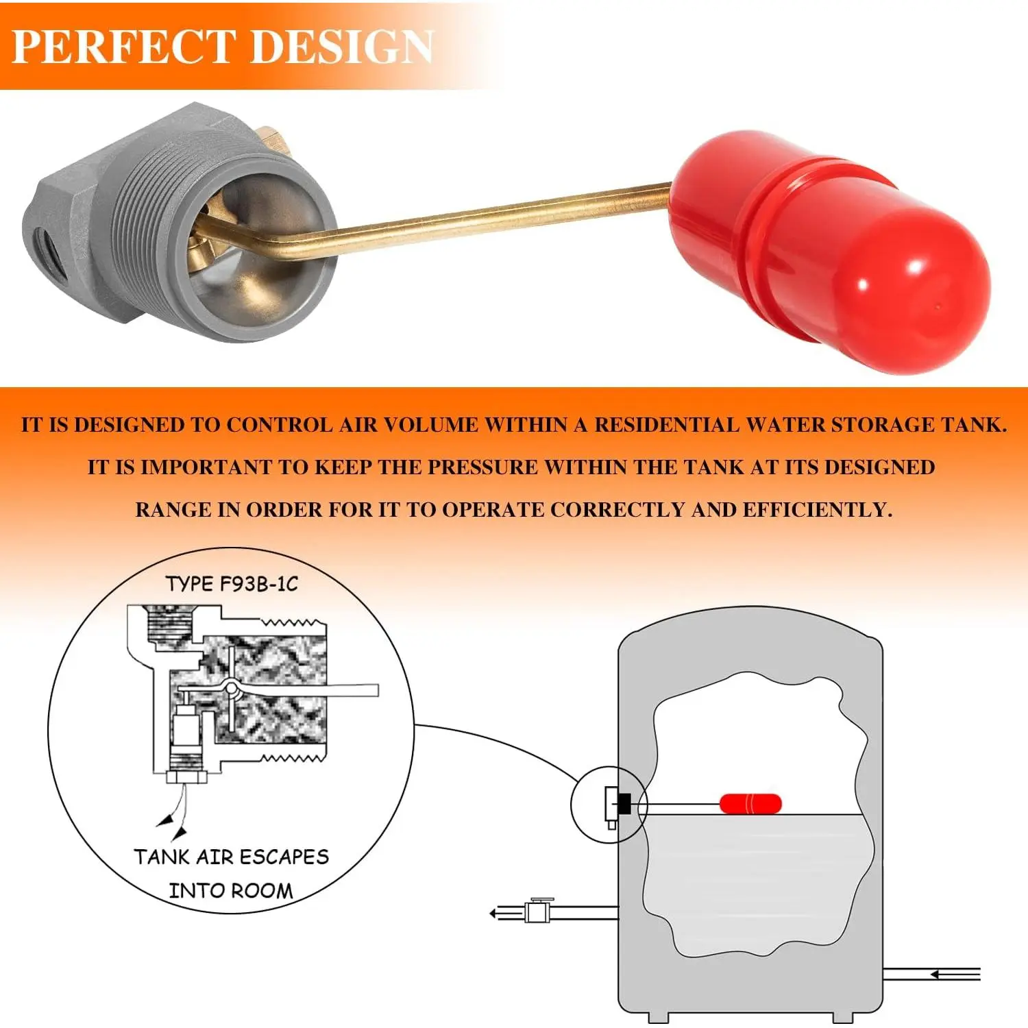 Perfect Design – It is designed to control air volume within a residential water storage tank.It is important to keep the pressure within the tank at its designed range in order for it to operate correctly and efficiently.