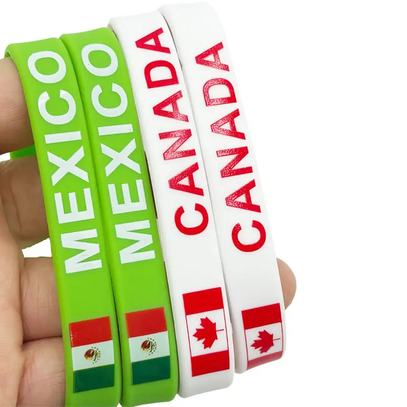 This silicone wristband celebrates the 2026 World Cup with the Mexico flag design It is a perfect souvenir for Mexican soccer fans showing green white and red national colors The wristband is soft durable and comfortable for daily wear at sports events or fan gatherings It makes a great gift for friends and family who support Mexico national team Wear it proudly to cheer for Mexico during the championship matches A must have collectible for true football lovers