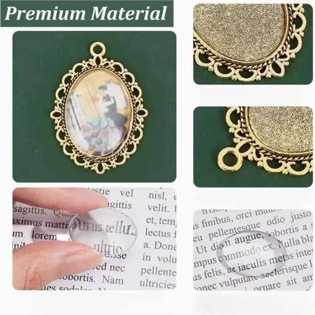 ·Material: the pendant bezels are made of strong mental alloy, hard and durable, will not flex or bend; the dome tiles are made of glass, hard and clear, can match the pendants well.