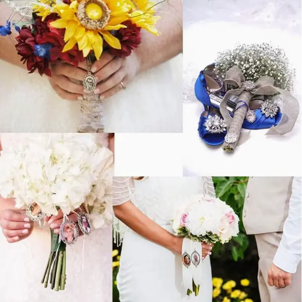 ·Wedding Memorial Photo Charm: Antique silver frame photo charm for your wedding bouquet. We like that you could remember your familiy on your wedding day and have them with you.