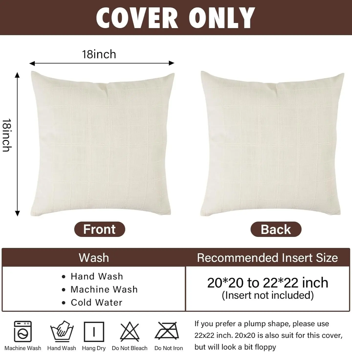 ·NOTE: Chenille Throw pillow cover are machine washable on a gentle cycle and do not bleach. If you prefer a plump shape, please use 22x22 inch, 20x20 is also suit for this cover, but will look a bit floppy.