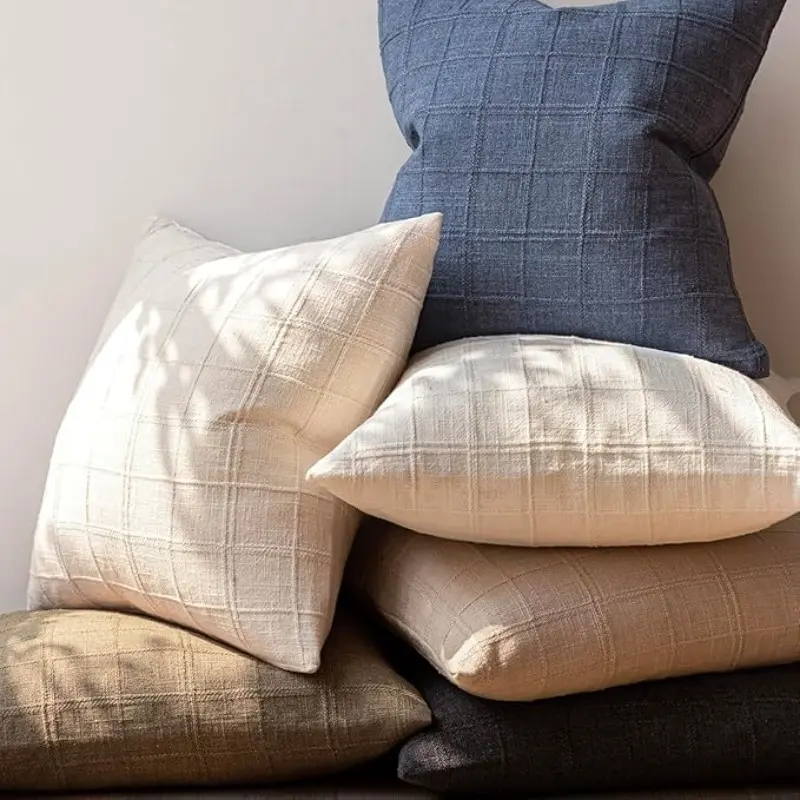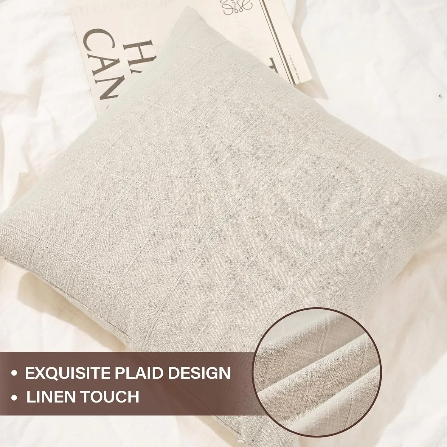 ·STYLE: Cushion cover features rustic farmhouse styles. Brief and neutral plaid design match with naturally soft fabric of 18*18 inch(45x45cm) pillow cover emerge the natural farmhouse style and add elegantly visual experience, highlight and special aesthetic.