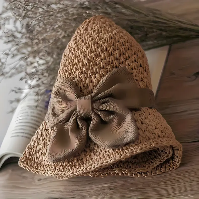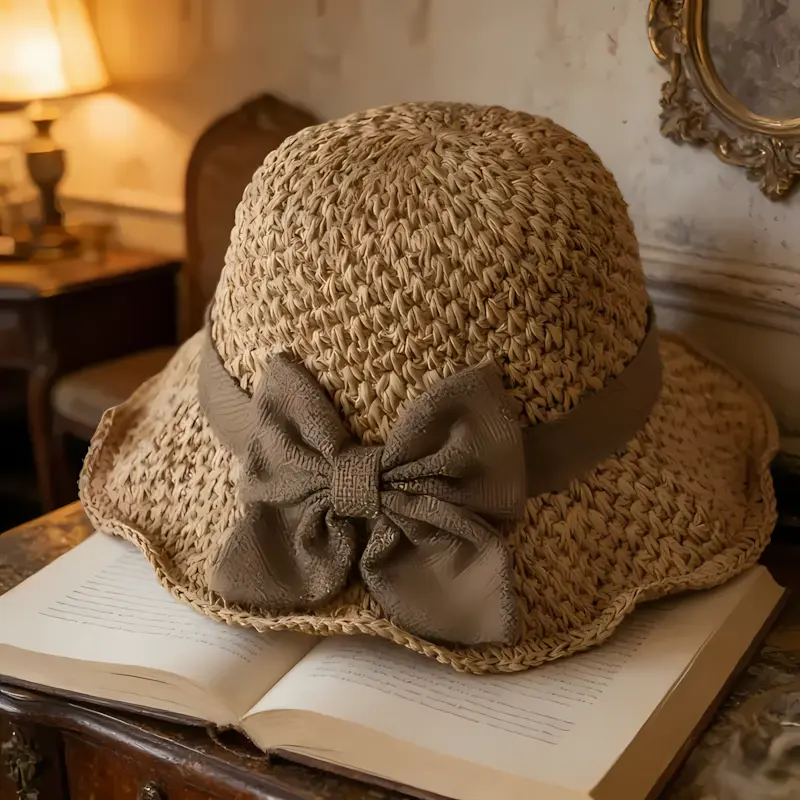This vintage woven handmade straw hat exudes elegance with its ruffle bow. Perfect for travel and outdoor activities, it offers a chic French style. The hat is foldable and breathable, making it ideal for beach outings. Its design combines functionality with fashion, ensuring comfort and style.
