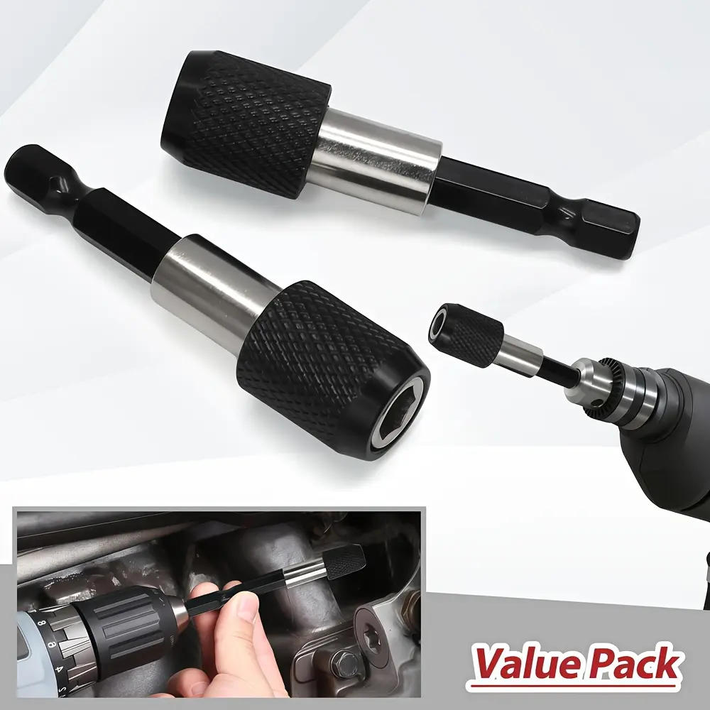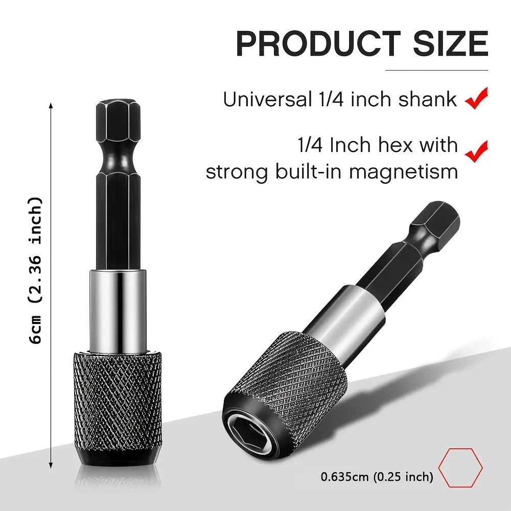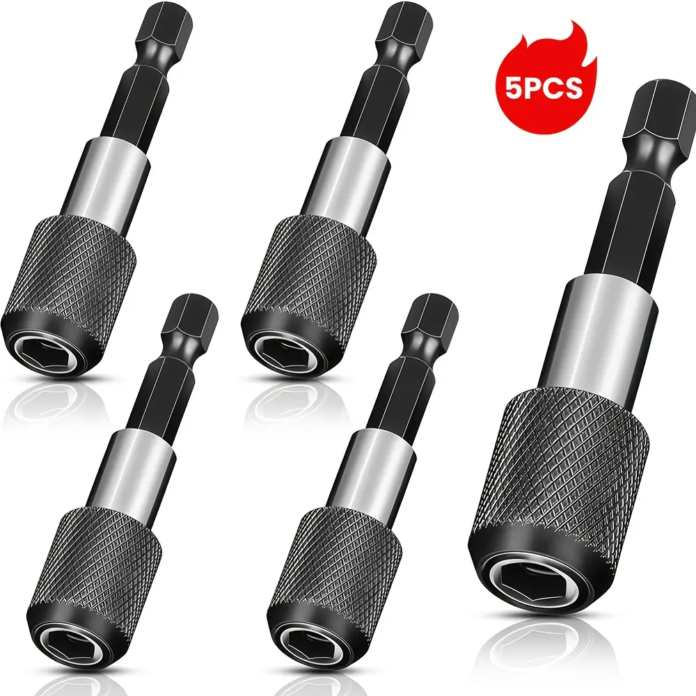 Set of 5 Magnetic Bit Holders with 1/4" Hex Shank, designed for quick release. These enhanced features include a drill bit extension rod and a chuck adapter suitable for screws and nuts.Set of 5 Magnetic Bit Holders with 1/4" Hex Shank, designed for quick release. These enhanced features include a drill bit extension rod and a chuck adapter suitable for screws and nuts.Set of 5 Magnetic Bit Holders with 1/4" Hex Shank, designed for quick release. These enhanced features include a drill bit extension rod and a chuck adapter suitable for screws and nuts.Set of 5 Magnetic Bit Holders with 1/4" Hex Shank, designed for quick release. These enhanced features include a drill bit extension rod and a chuck adapter suitable for screws and nuts.Set of 5 Magnetic Bit Holders with 1/4" Hex Shank, designed for quick release. These enhanced features include a drill bit extension rod and a chuck adapter suitable for screws and nuts.