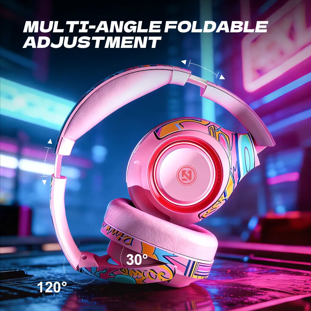 True Dual-Mode Connectivity: Enjoy wireless freedom via Bluetooth 5.3 for PC & mobile, or switch to wired AUX mode for zero-latency gaming on PS5, PS4, and Nintendo Switch. The included AUX cable ensures perfect compatibility. RGB Breathing Light Effects:Features dynamic multicolor RGB lighting with a dedicated button to toggle effects on/off, enhancing your gaming atmosphere and style. Unique Hand-Painted Graffiti Design: 3D relief color-blocking design with artistic graffiti patterns, standing out from ordinary headsets with a trendy, personalized look. High-Fidelity 40MM Silver-Plated Driver:Delivers balanced, lossless audio with enhanced bass and clear treble, perfect for music, movies, and immersive gameplay. Detachable Noise-Cancelling Microphone: Includes a gaming-grade plug-and-play mic that reduces background noise for crisp, clear voice chat during team battles. Low Latency & Footstep Enhancement:Optimized for esports with 45ms ultra-low latency (BT Game Mode) and enhanced low-frequency algorithm for precise in-game audio cues like footsteps and gunfire. Long-Lasting 400mAh Battery:Enjoy up to 38 hours of wireless playback on a single charge, with only 3 hours charging time and 400 hours standby for all-day use. Foldable & Adjustable Design:Multi-joint foldable structure allows easy storage and portability, with adjustable stainless steel headband and protein over-ear muffs for extended comfort. Multiple Playback Modes: Supports Bluetooth, TF Card, AUX, and dedicated Gaming Mode, offering flexible audio options for different scenarios without needing drivers. Complete Accessories Included: Comes with Type-C charging cable, 3.5mm AUX audio cable (for console wired play), user manual, and a storage pouch for convenience and protection.