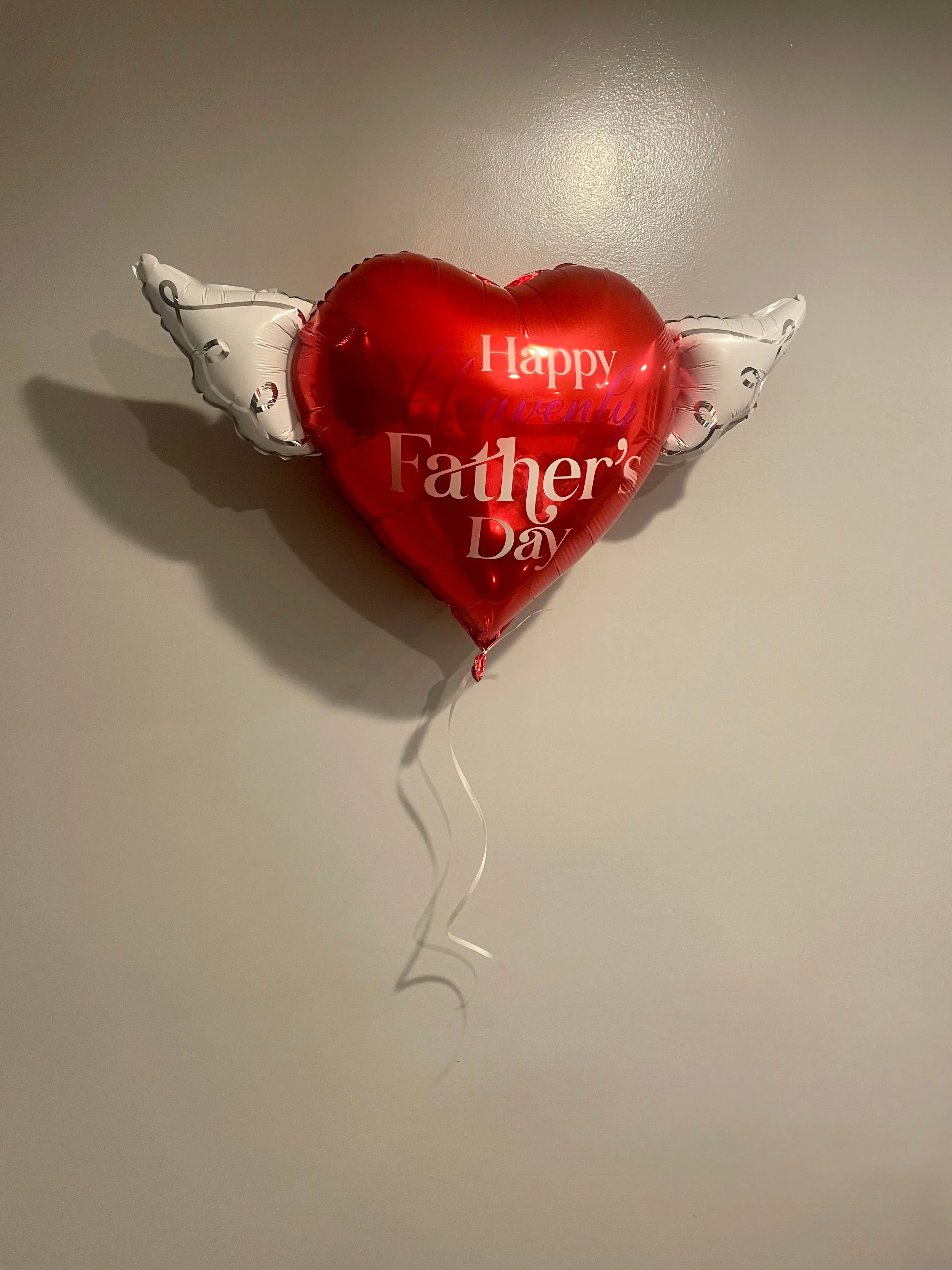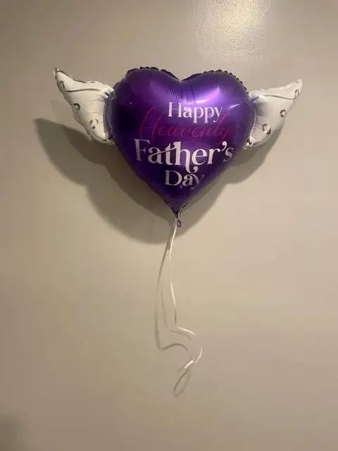 Happy Heavenly Father's Day Memorial Balloon with Angel Wings – Heart Shaped Graveside Tribute