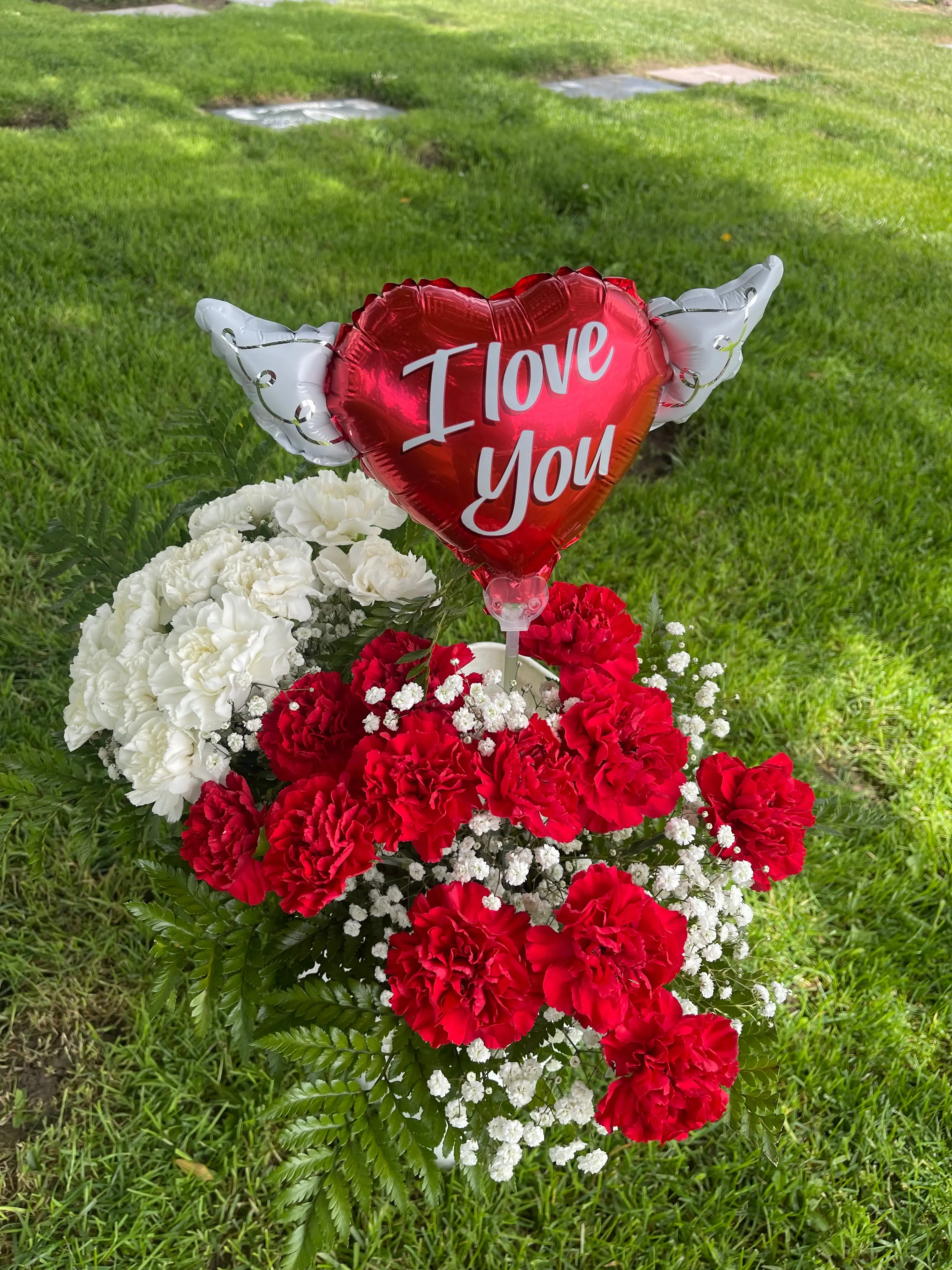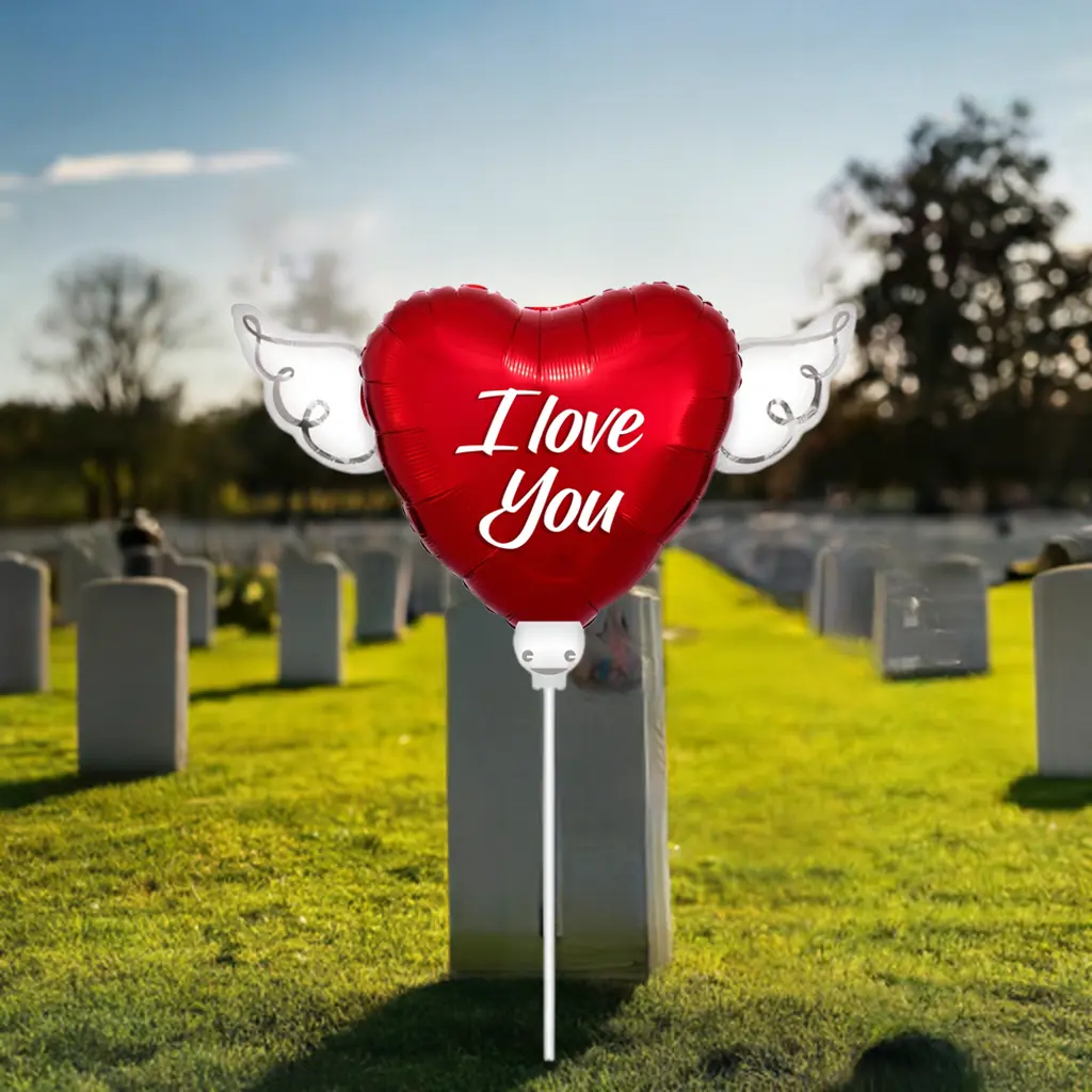 Whether you are decorating a gravesite for a wedding anniversary, honoring a loved one on their heavenly birthday, placing a heartfelt tribute at a memorial service, visiting the cemetery on the anniversary of their passing, or simply arriving at a graveside on an ordinary day when the love feels too strong to leave unexpressed — this I Love You Memorial Balloon on a Stick with angel wings is a beautiful and lasting way to say those three words one more time, and every time after that.