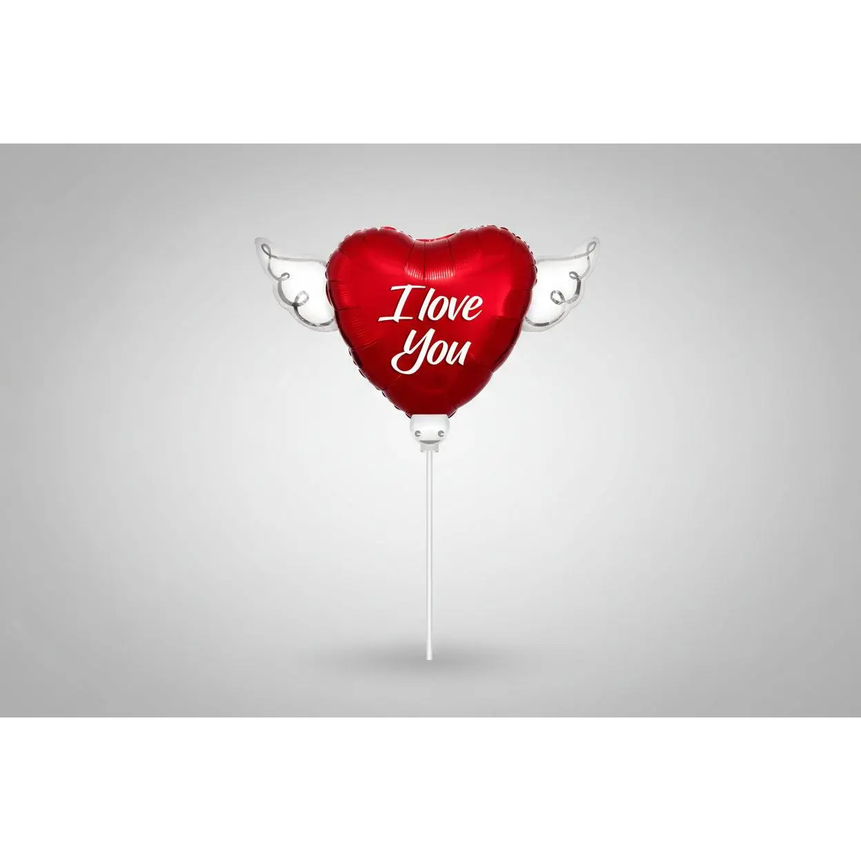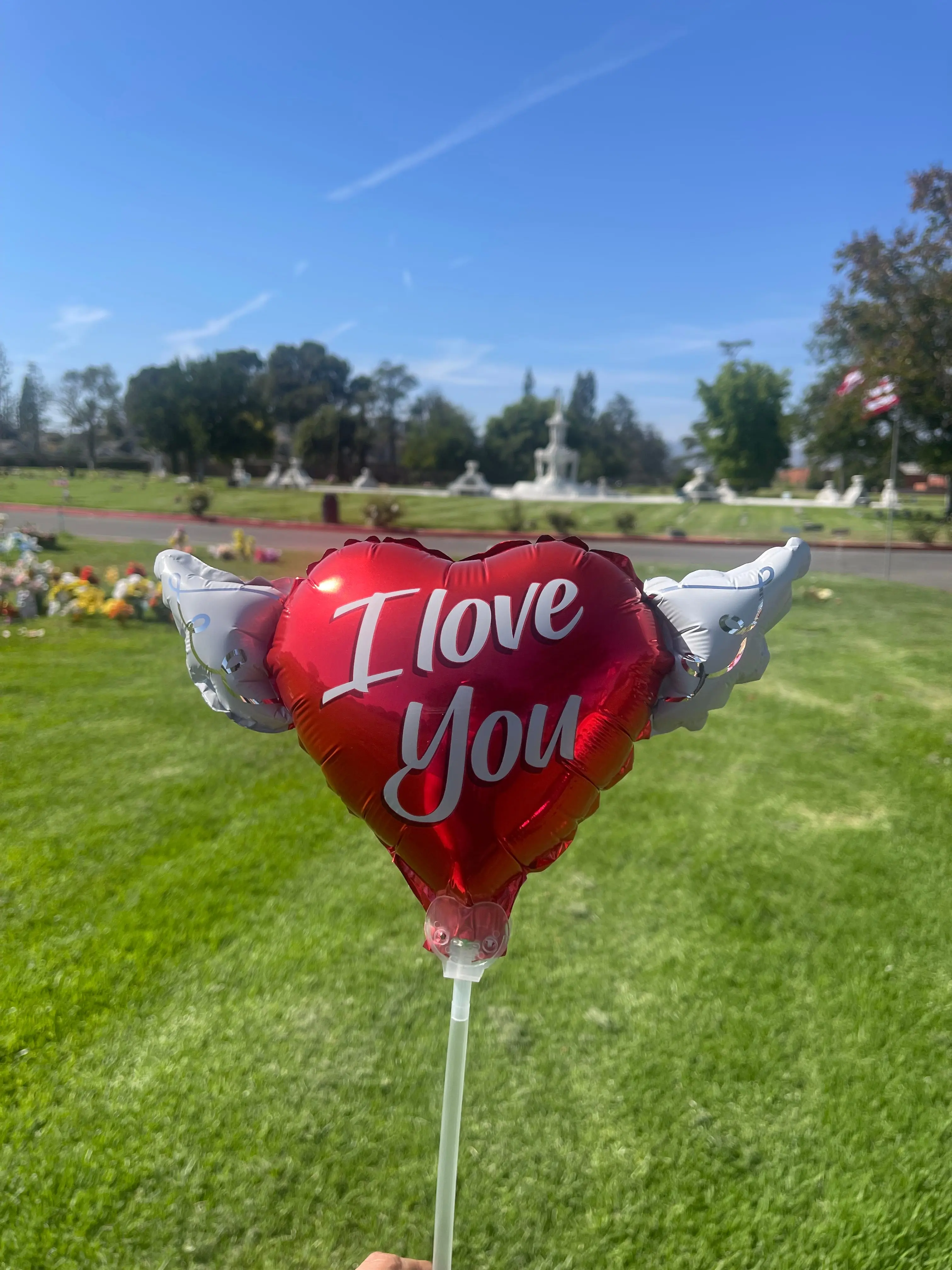 I Love You Memorial Balloon on a Stick with Angel Wings – Heart Shaped Graveside Tribute
