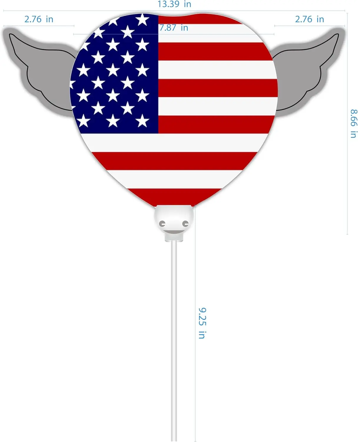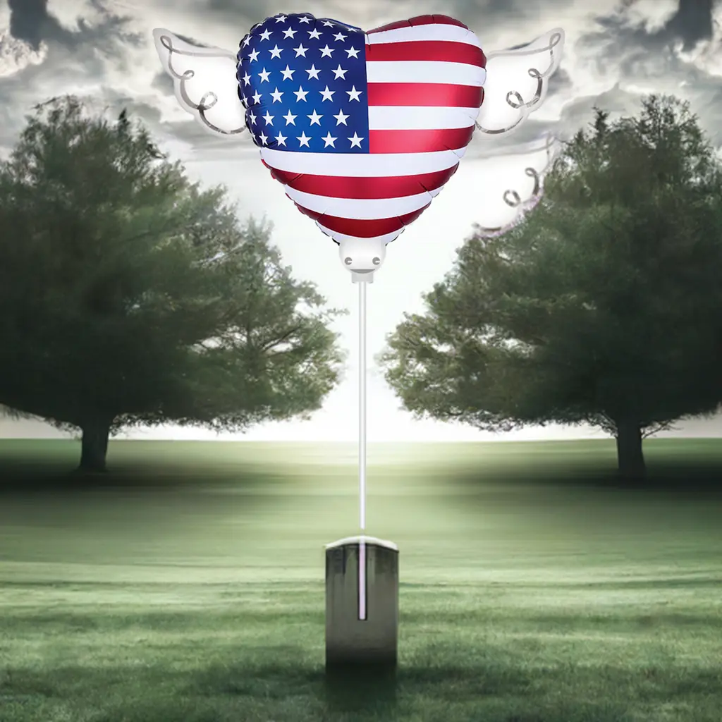USA Flag Memorial Balloon on a Stick with Angel Wings – Heart Shaped Patriotic Graveside Tribute