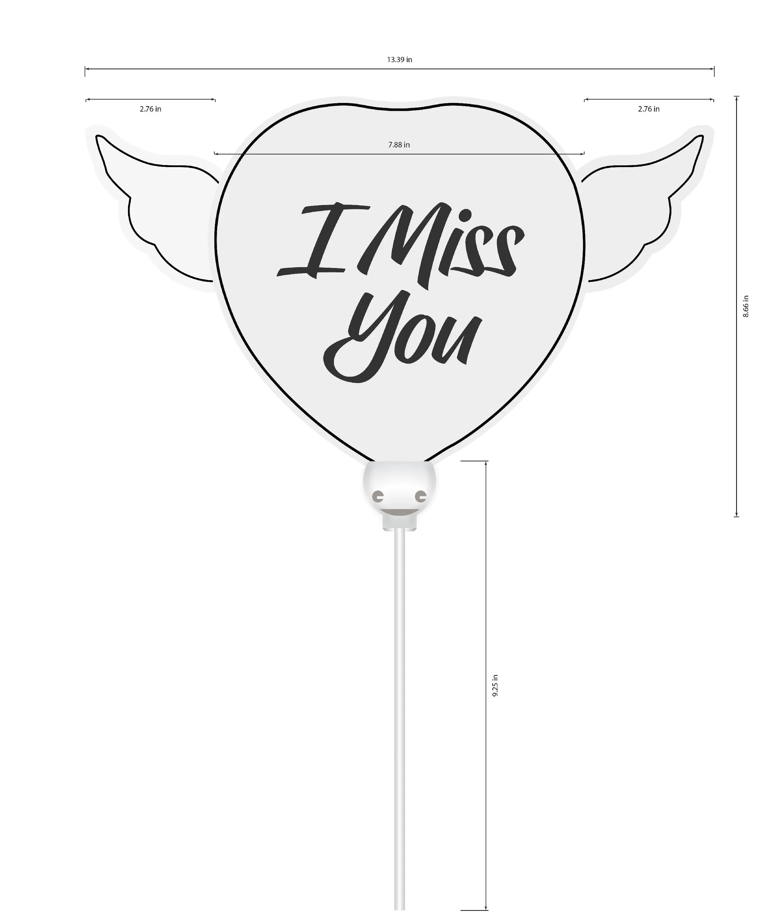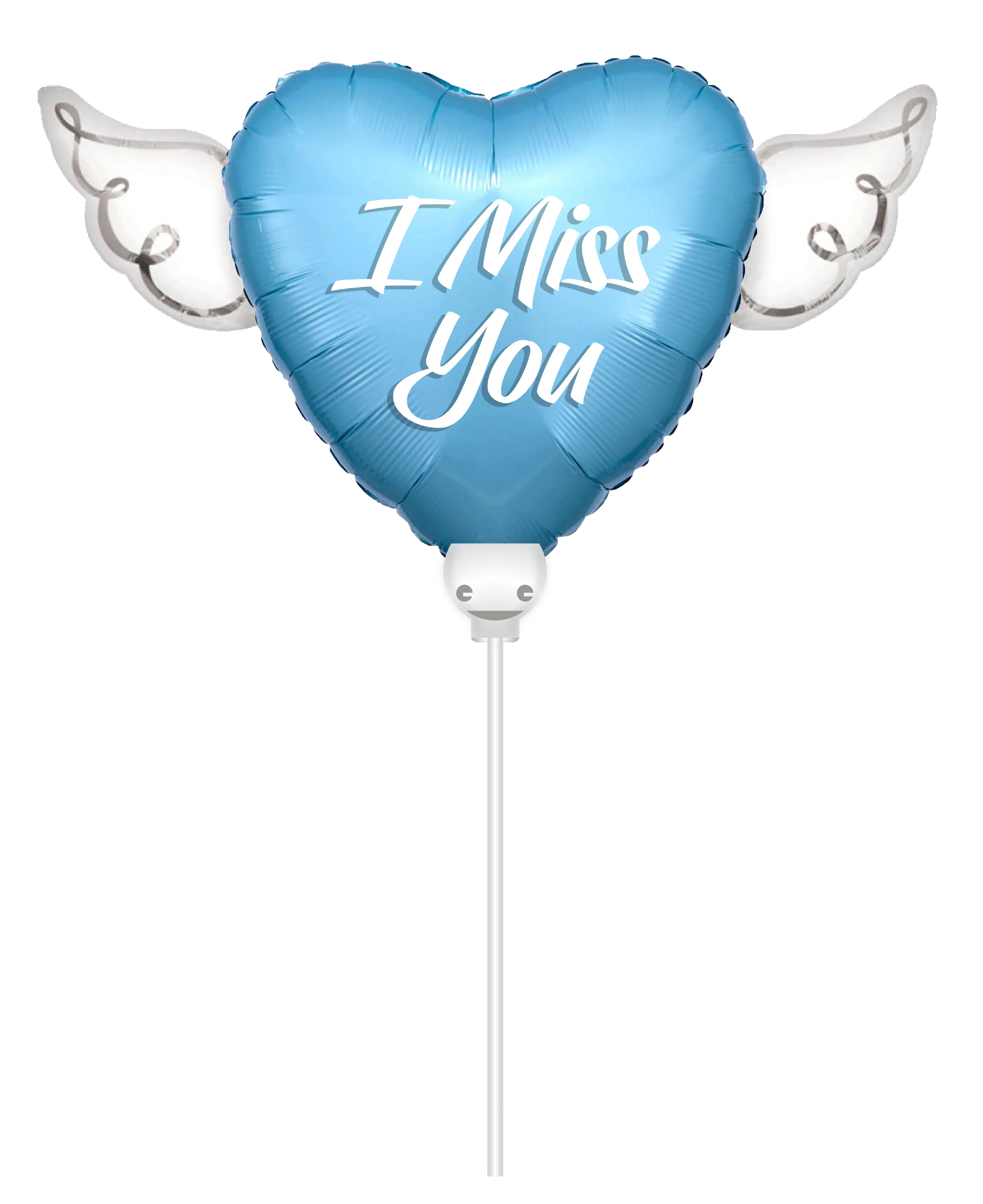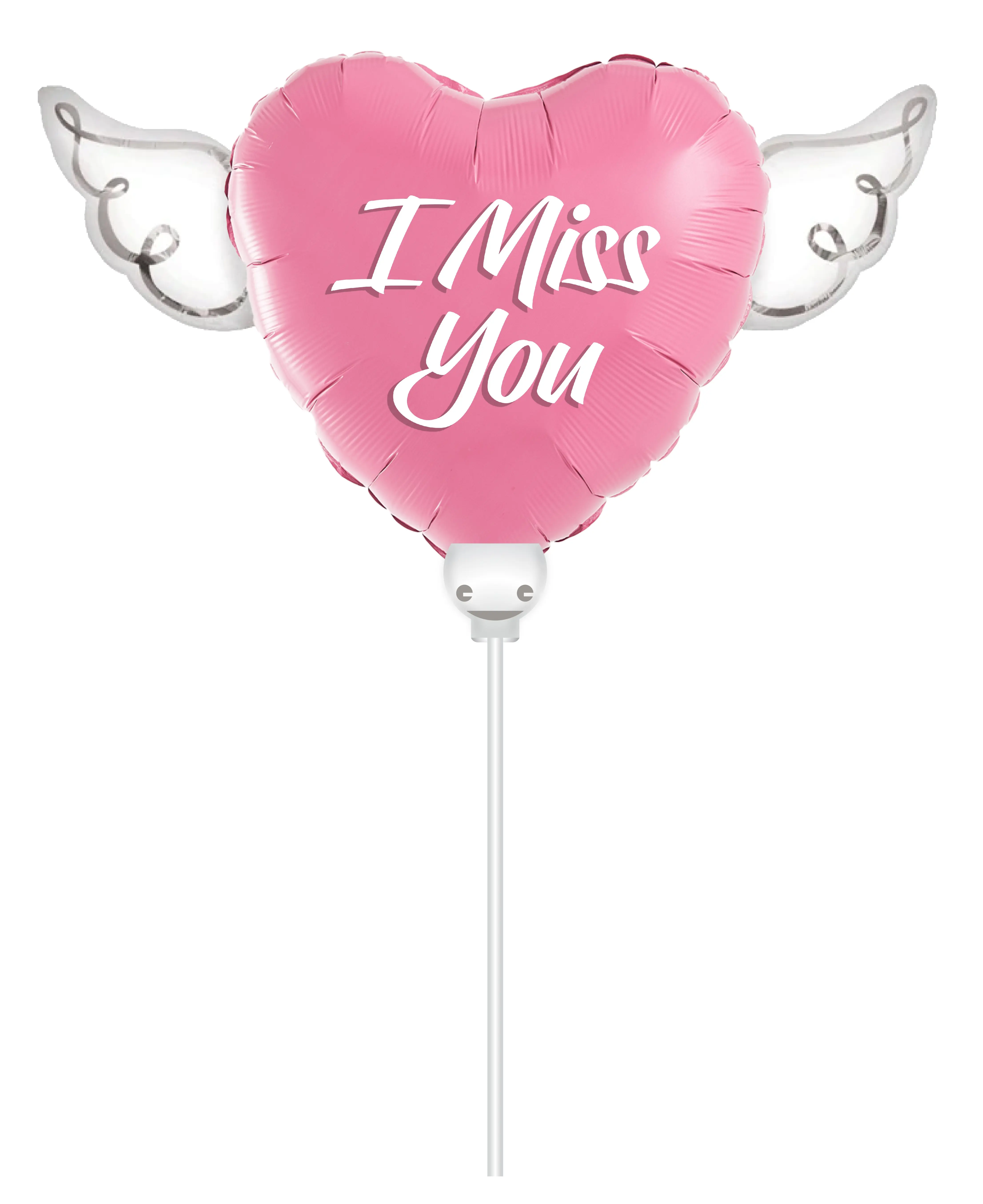 I Miss You Memorial Balloon on a Stick with Angel Wings – Heart Shaped Graveside Tribute